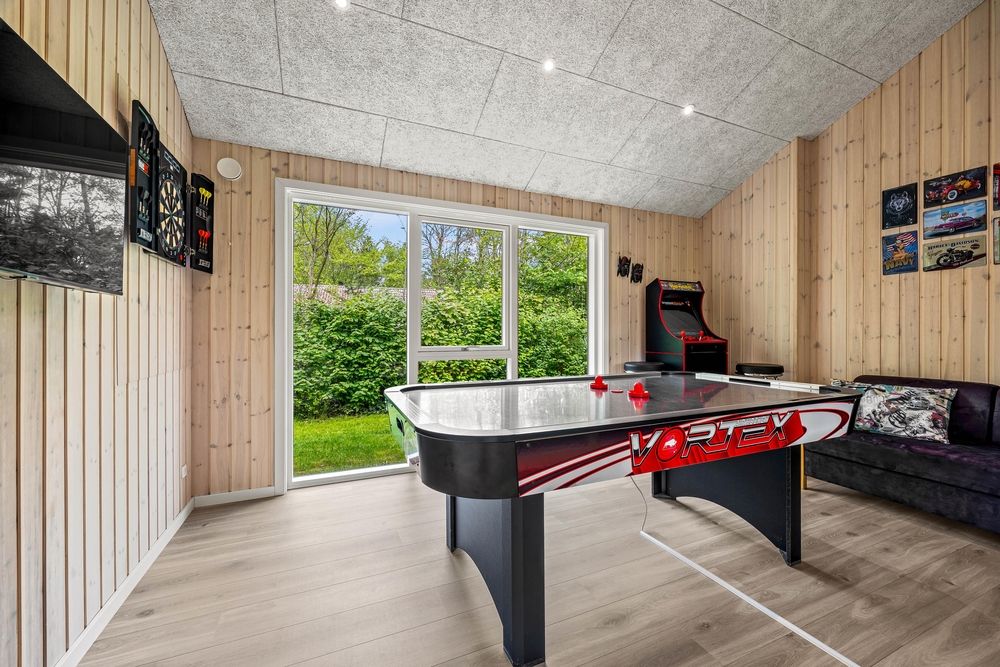 Darüber hinaus gibt es im Ferienhaus im Fyrrelunden 47 eine Aktivitätsecke. Außerdem könnt ihr es euch auf der teilweise überdachten Terrasse gemütlich machen und den dänischen Sommer genießen.