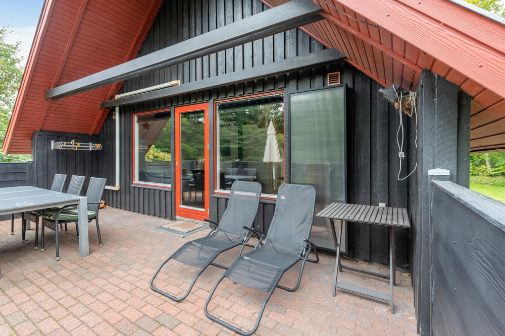 Der Außenbereich des Ferienhauses im Fyrrelunden 52 ist ideal gestaltet, um sowohl Entspannung als auch Spaß für die ganze Familie zu ermöglichen. Die großzügigen Terrasse bietet Platz zur Erholung im Freien. Die abgeschirmte und geschlossene Terrasse sorgt für Privatsphäre und der teils überdachte Teil bietet Schutz vor Wetterumschwüngen. Der vorhandene Grill bietet die Möglichkeit, köstliche Mahlzeiten im Freien zuzubereiten und hierbei die Natur zu genießen.