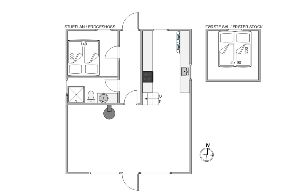 Die 2 Schlafzimmer des Ferienhauses bieten jeweils Doppelbetten, sind ausgelegt für bis zu 4 Personen und laden euch dazu ein, nach einem ereignisreichen Tag zur Ruhe zu kommen. Bitte beachtet, dass das Schlafzimmer in der 1. Etage nur durch eine steile Treppe erreichbar ist. Das einfache Badezimmer ist mit einer Fußbodenheizung und Dusche ausgestattet.