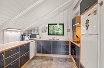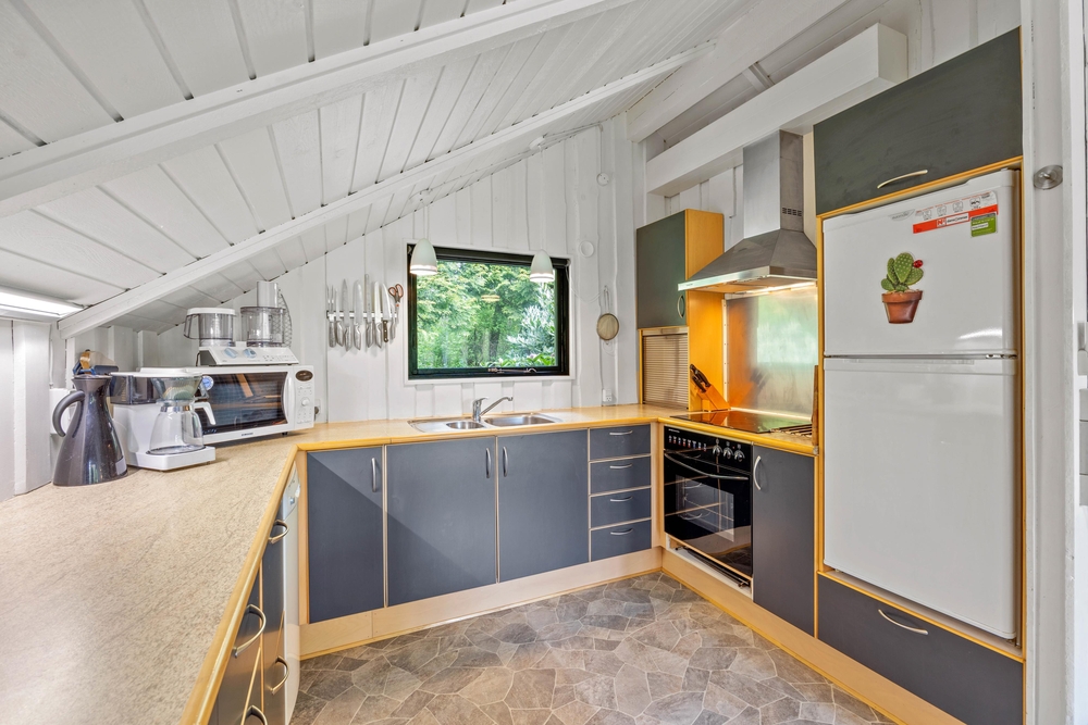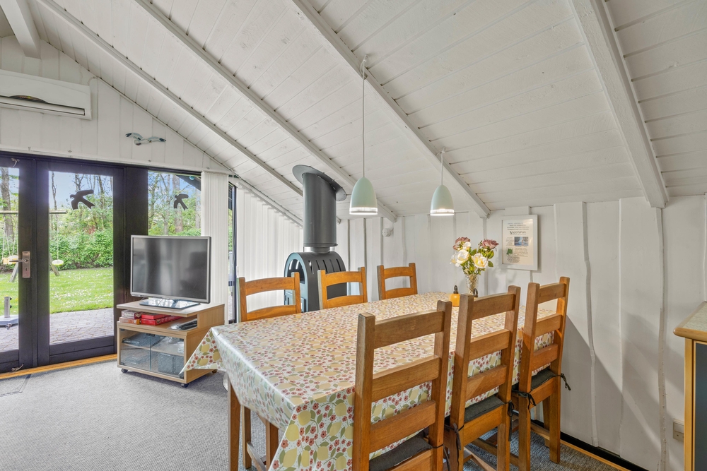 Ein Kaminofen sorgt im Wohnraum des Ferienhauses für wohlige Wärme und eine einladende Atmosphäre, besonders an kühleren Abenden. Die offene Küche bietet ausreichend Platz zum Kochen und besticht durch ihre praktische Einrichtung. Eine Spülmaschine erleichtert euch den Abwasch und gibt euch mehr Zeit, das gemeinsame Essen zu genießen.