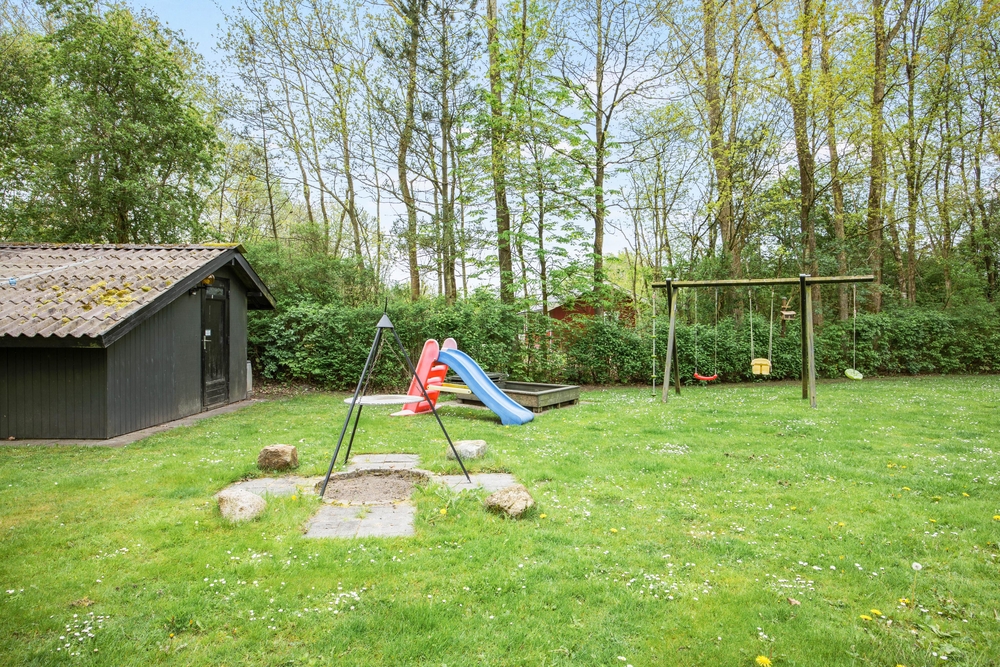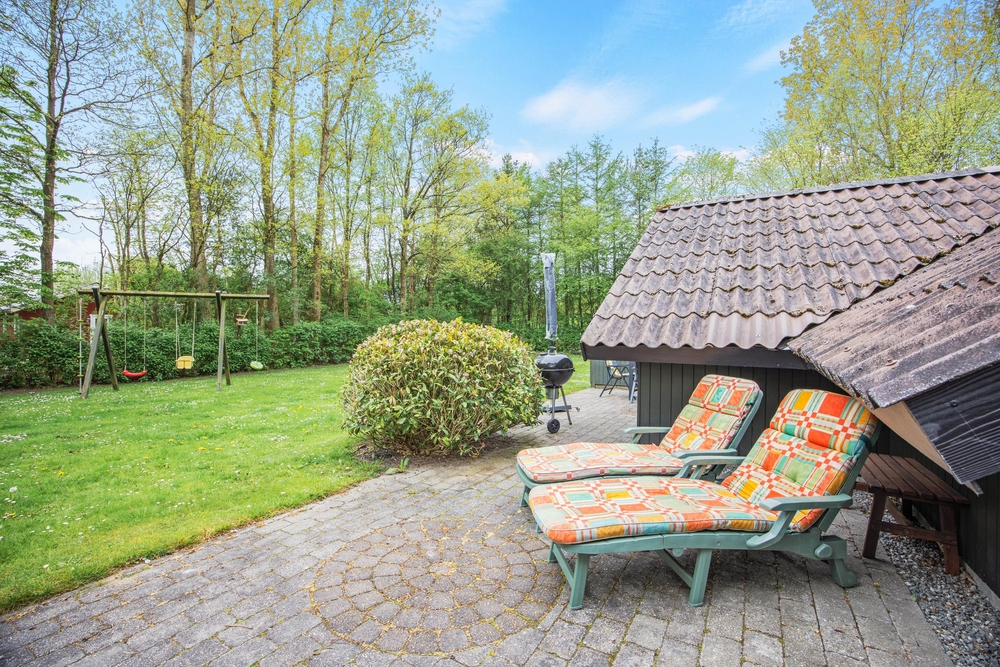 Das Ferienhaus ist von einem Rasengrundstück umgeben, das viel Platz für Entspannung und Spiel bietet. Es gibt eine offene Terrasse, die sich hervorragend für gesellige Grillabende eignet. Für die kleinen Gäste gibt es im Garten eine Schaukel und einen Sandkasten, was für Abwechslung und Spielvergnügen sorgt. Während die Kinder spielen, haben die Eltern die Möglichkeit, sich zu entspannen und die Natur zu genießen.