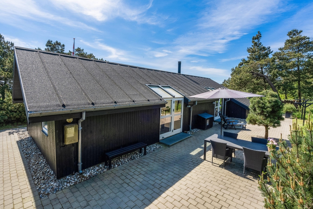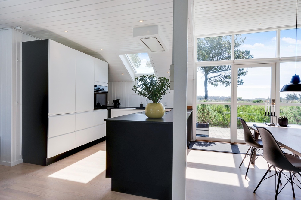 Nur wenige hundert Meter von der Nordsee entfernt liegt nah am Fluss Henne Mølle Å auf Fyrrenålevej 1 dieses stilvolle, gemütlich und modern eingerichtete Ferienhaus mit Platz für 6 Personen. Vom Essbereich in der Mitte des Hauses habt ihr einen fantastischen Panoramablick auf ein insbesondere im Spätsommer in tollen Farben blühendes Heidegebiet.