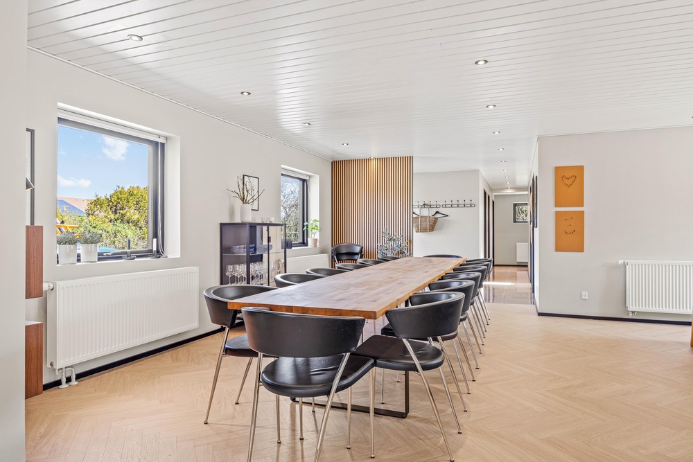 In der großzügigen Wohnküche könnt ihr alle gemeinsam ein leckeres Abendessen zubereiten, und an dem langen Esstisch gemeinsam euer Menu genießen. ?Das perfekte Dinner? in Blåvand wäre doch auch mal eine Idee für einen kleines Kochevent.