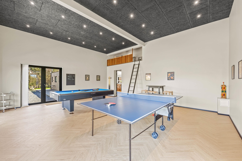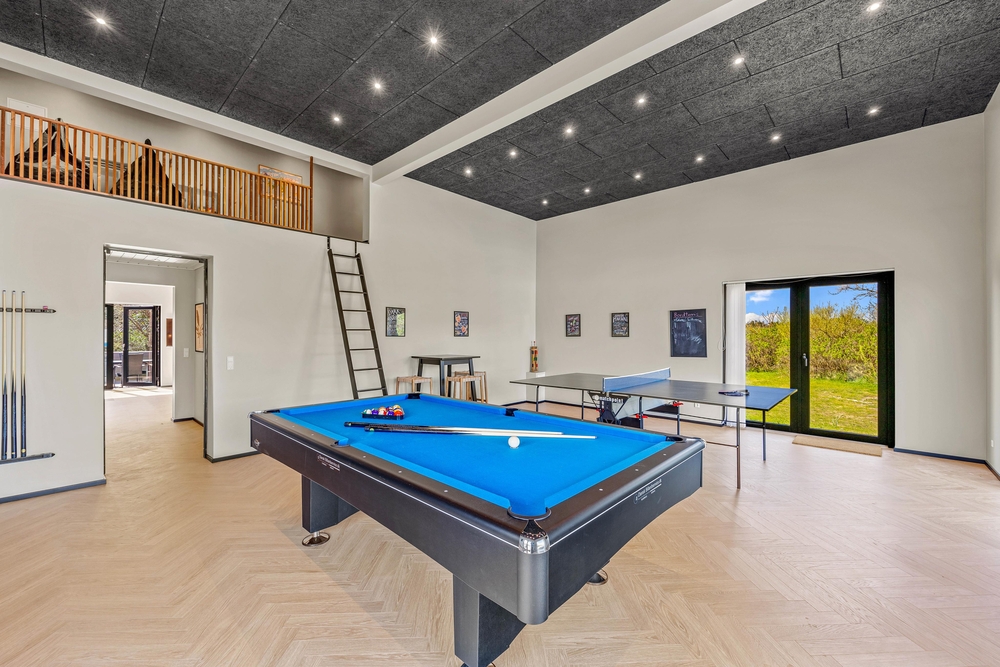 Seid ihr auf der Suche nach einem Ferienhaus für die große Familie, oder für einen Urlaub mit eurem Freundeskreis? Dann ist das großzügige Aktivitätshaus im Fyrvej 23 in Blåvand vielleicht genau die richtige Wahl für euch. Neben einem Aktivitätsraum mit Poolbillard und Tischtennis, gibt es für Wellness Liebhaber auf der Terrasse einen frei stehenden Whirlpool, und ein Saunafass. Langeweile wird hier nicht aufkommen.