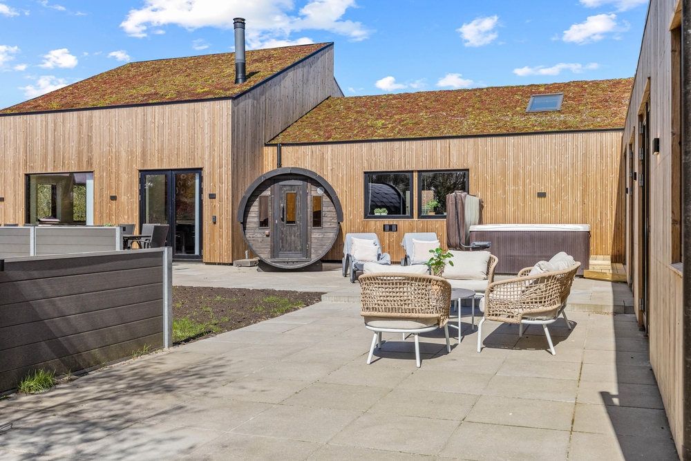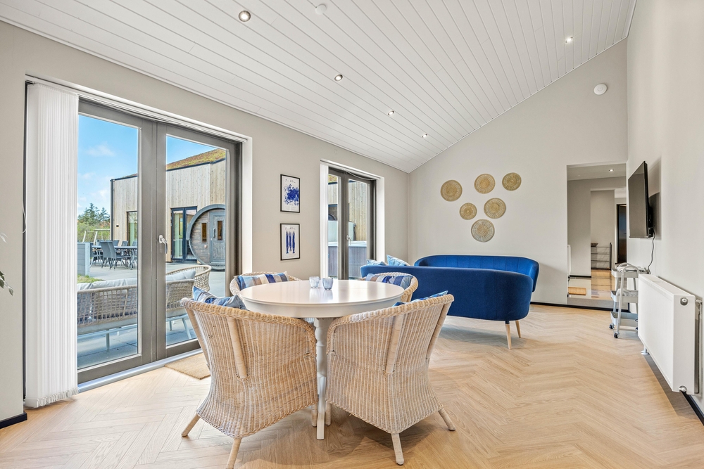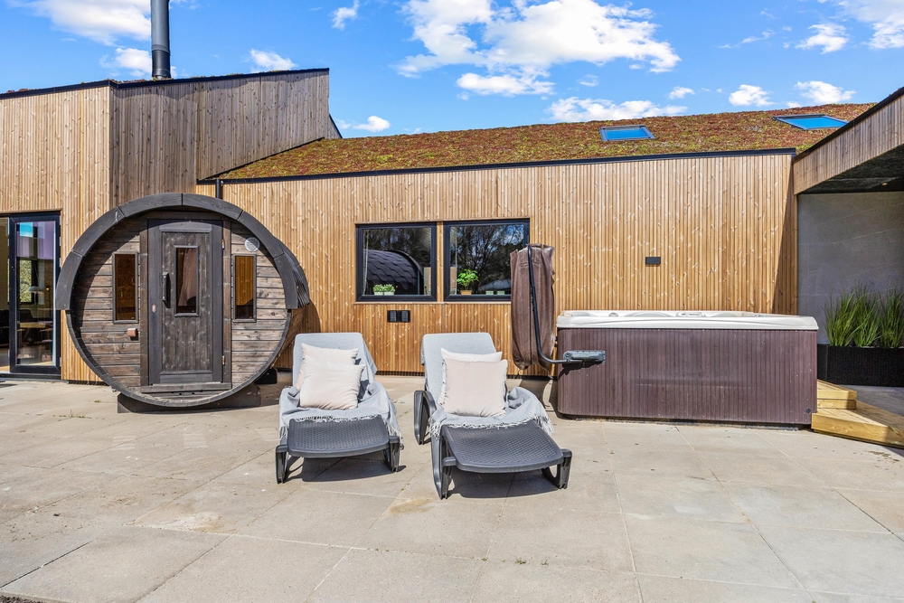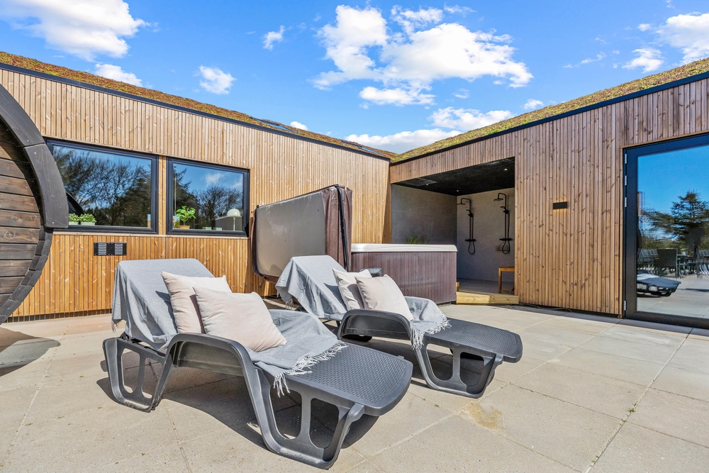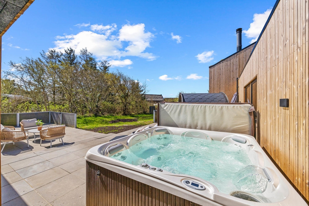 Ein Highlight sind der freistehende Whirlpool und das Saunafass. Unter dem einmalig, schönen Sternenhimmel von Blåvand im sprudelnd, warmen Wasser zu entspannen, ist mit Sicherheit ein unvergessliches Urlaubserlebnis.