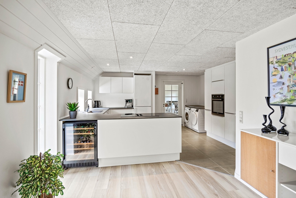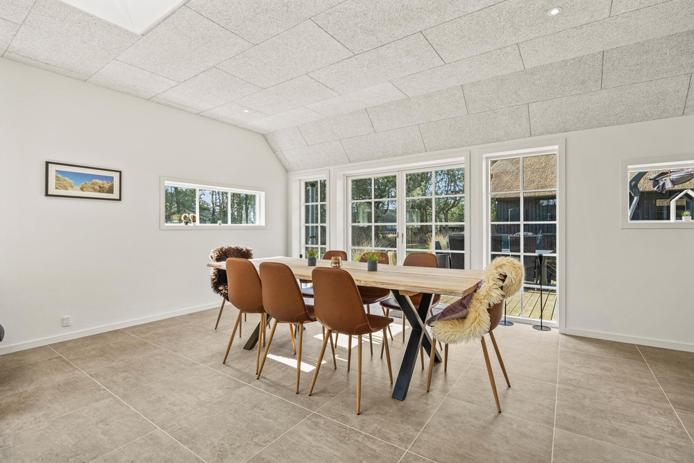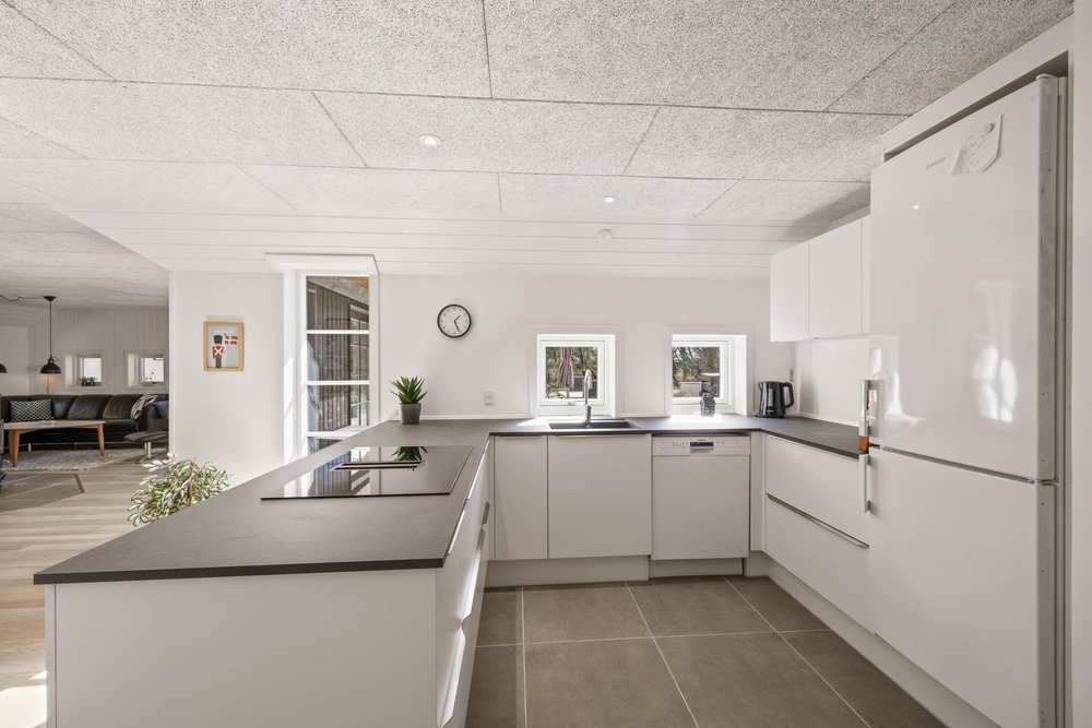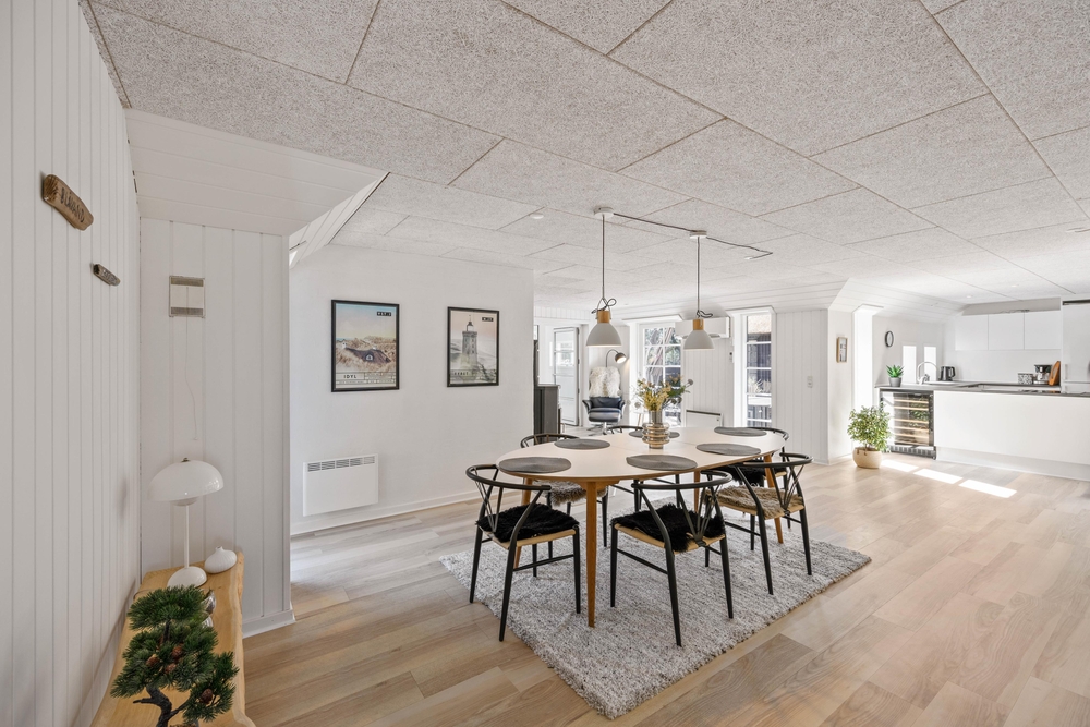 Hier im Fyrvej 31 in Blåvand erwartet euch der dezente skandinavische Einrichtungsstil, der einen zur Ruhe kommen lässt um sich auf das wichtigste zu konzentrieren, nämlich die gemeinsame Zeit mit lieben Menschen. Deshalb ist der offene Wohnbereich das Herz des Hauses, natürlich mit dem klassischen Brennofen, der für warme Gemütlichkeit sorgt. Hier könnt ihr gemeinsam kochen, essen, Filme anschauen oder einfach in großer Runde beisammen sitzen.