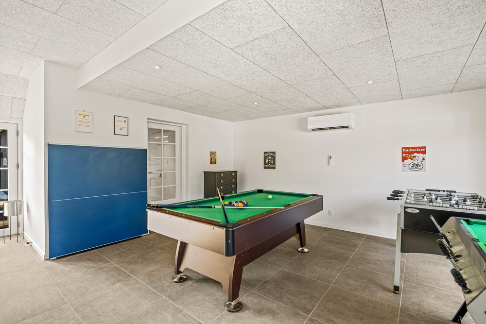 Mit Sauna, Außenwhirlpool und Außendusche (nur im Sommer verwendbar) einerseits und einem Aktivitätsraum mit Billard, Tischtennis und Tischfußball, werdet ihr euch bei gemeinsamen Aktivitäten und einem entspannenden Wellnessprogramm toll erholen. Darüber hinaus machen Schaukel, Trampolin und Spielhaus das Außenareal zu einem Spieleparadies.