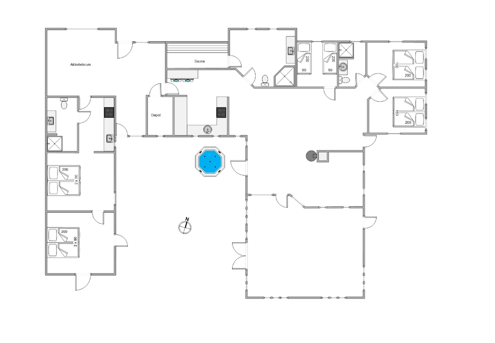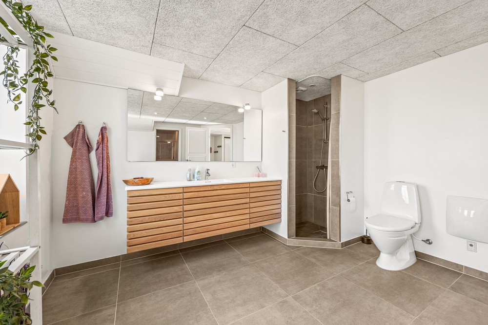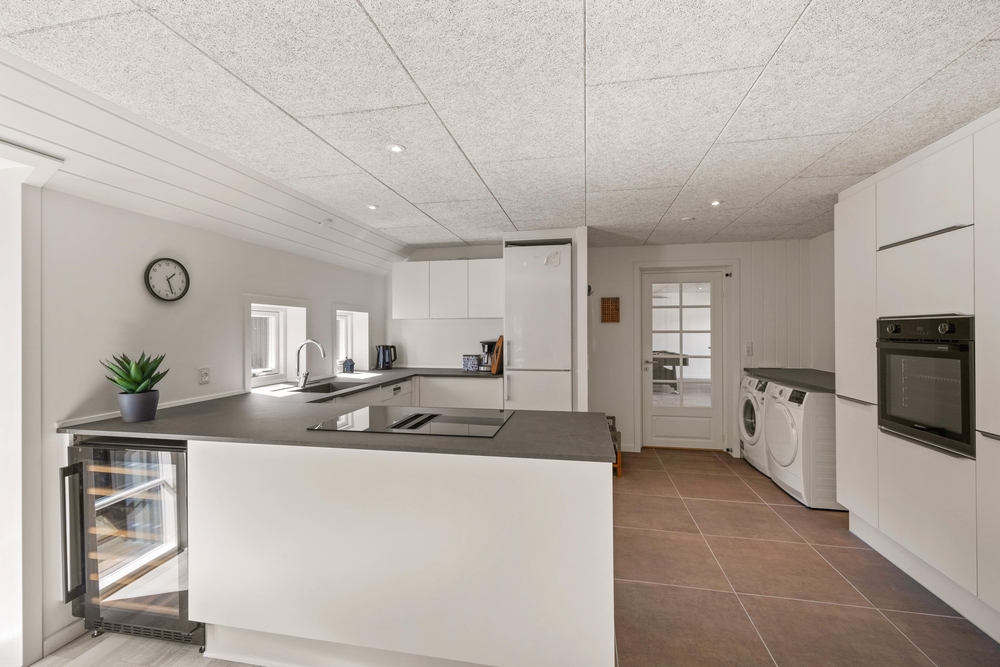 Auf 218 m2 Wohnfläche ist auch auf der praktischen Seite für alles gesorgt, so stehen euch zwei Badezimmer mit Fußbodenheizung zur Verfügung und natürlich sind auch Waschmaschine, Trockner und Spülmaschine vorhanden, damit die anfallenden Haushaltsaufgaben schnell erledigt sind. Desweiteren gibt es auch Smart-TVs in allen Zimmern und einen großen 64-Zoll-Smart-TV mit Chromecast im Wohnzimmer plus eine energiesparende Wärmepumpe im Haus.