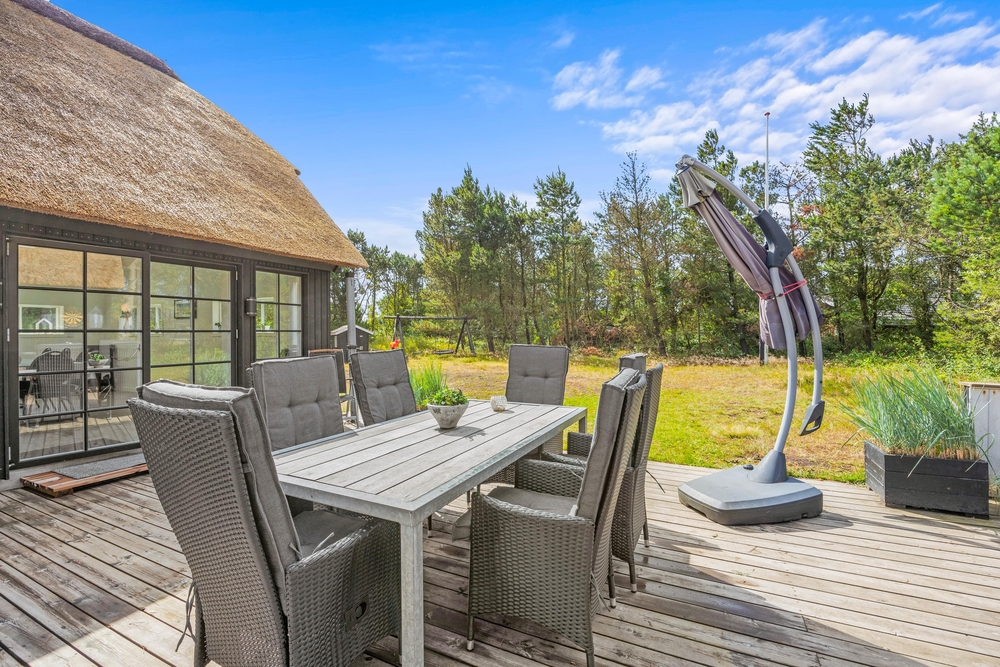 Das schöne reetgedeckte Ferienhaus am Fyrvej 31 wurde 2023 grundlegend renoviert und bietet nun 6 Personen Platz für einen erholsamen Urlaub. Mit nur 200 Metern zum schönen Nordseestrand und 800 Metern zum Ortskern von Blåvand seid ihr nah an allem und dennoch in eurer eigenen Ferienoase.
