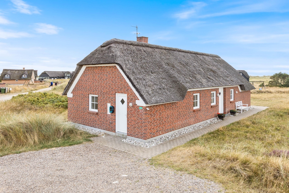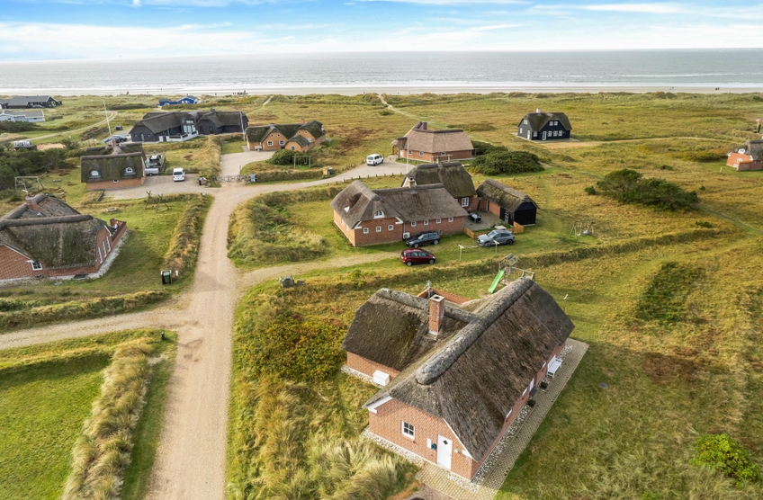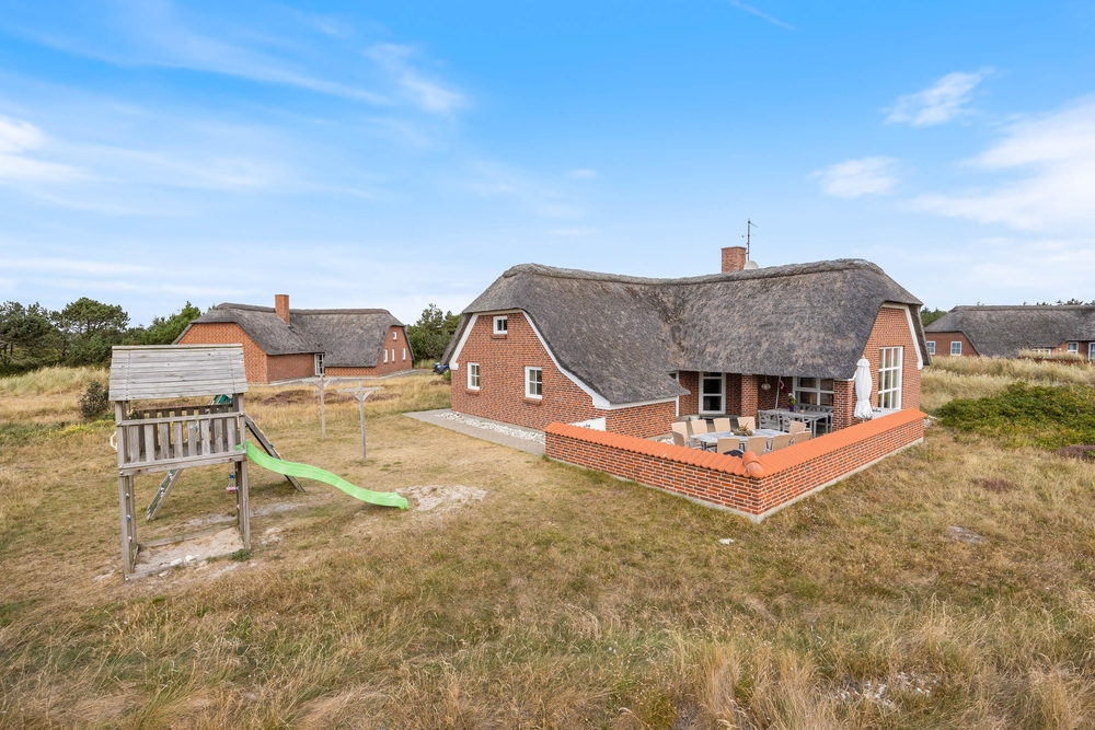 Im Außenbereich könnt Ihr die dänische Natur in vollen Zügen genießen. Auf der teilweise überdachten Terrasse stehen Liegestühle bereit, damit Ihr die Füße im Urlaub auch mal hochlegen könnt. Während ihr euch erholt, und dem Rauschen der Nordseewellen lauscht, können eure Kinder sich draußen austoben, spielen und schaukeln.