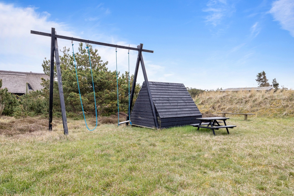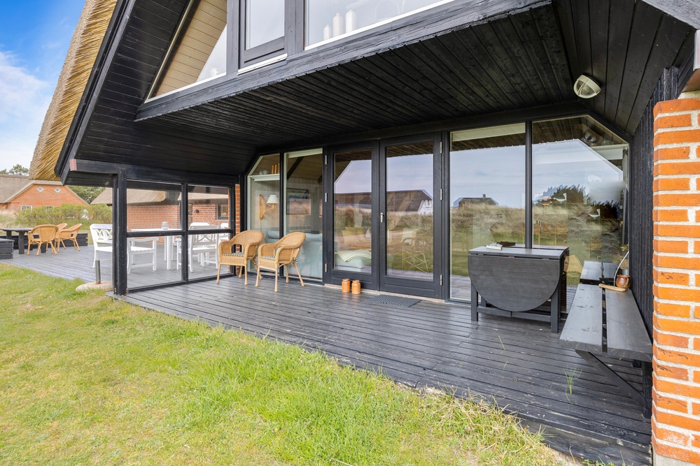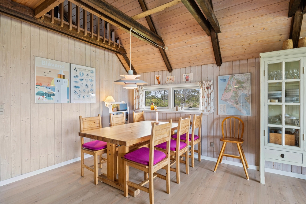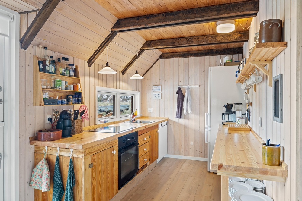 ?Hygge? ist das Motto im Reetdach Haus im Fyrvej 56, das in 2022/2023 teilsweise renoviert wurde. Hier kommt ihr an, und könnt euch sofort wohl fühlen. Auf zwei Etagen verteilt sich der Grundriss von insgesamt 150 m². Im Erdgeschoss trefft ihr euch für gemeinsame Ferienstunden. Die freiliegenden Dachbalken geben dem Wohnbereich eine ganz besondere Atmosphäre. Bei einem lodernden Feuer im Kaminofen, macht ihr es euch auf dem Sofa gemütlich, und genießt eure Ferienzeit in Dänemark bei einem Kino- oder Spieleabend. Auch im Obergeschoss gibt es gemütliche Sitzecken, unter anderem eine Sofaecke mit Flat Screen, in die ihr euch für ein wenig Ruhe zurückziehen könnt.