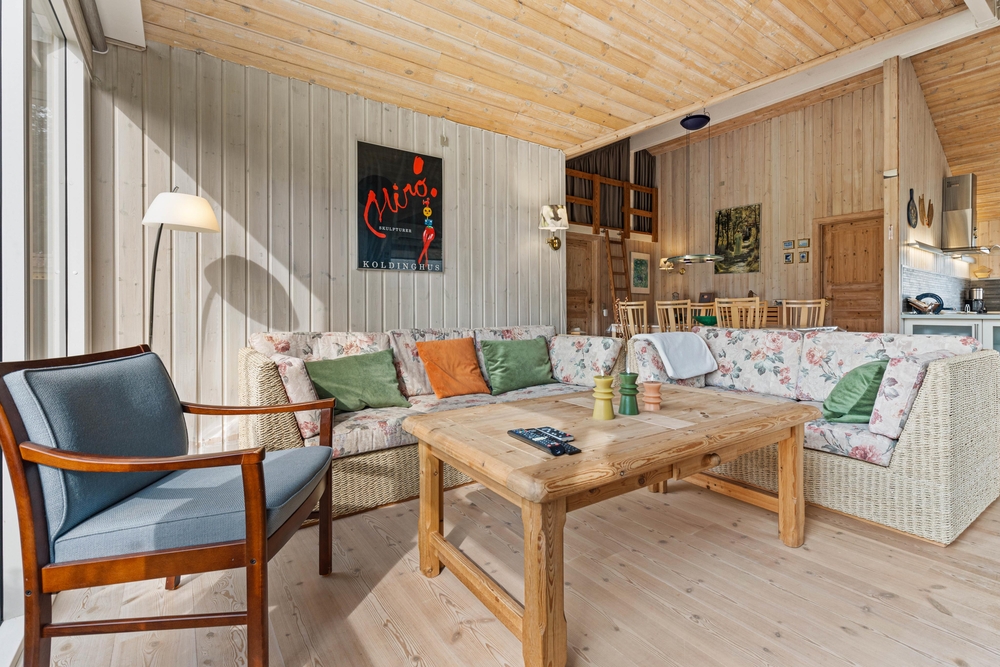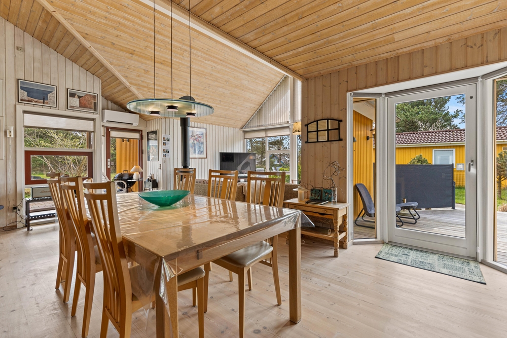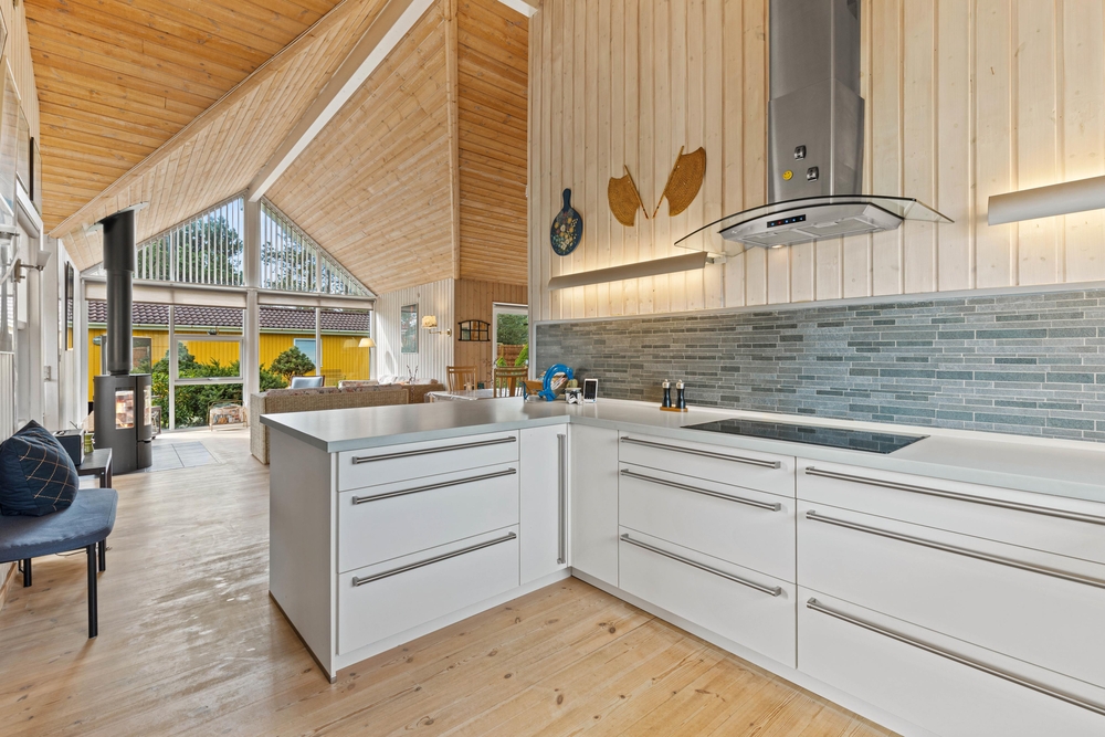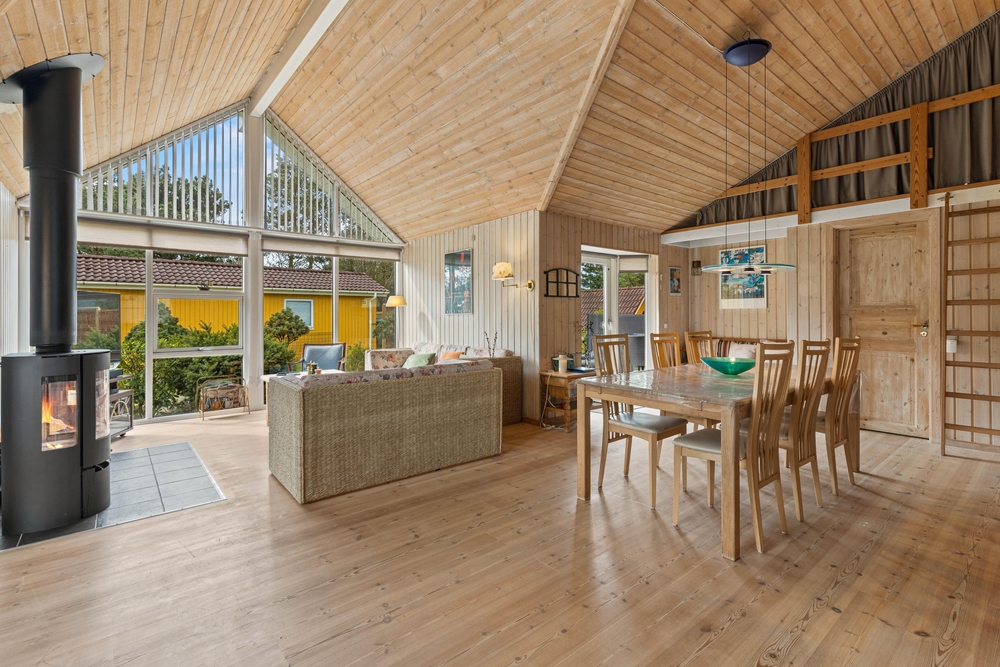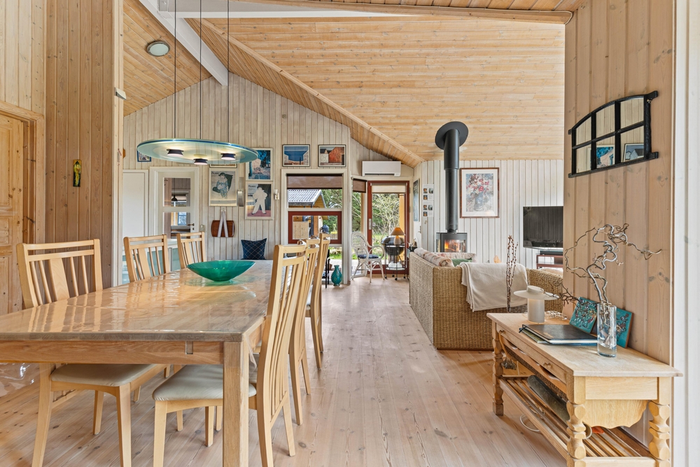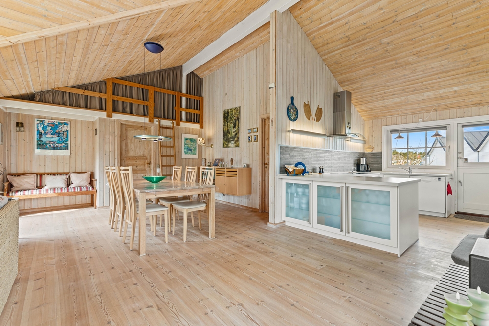 Die gut ausgestattete Küche ist offen mit dem Wohn- und Essbereich verbunden, wo ihr am Esstisch den nächsten Tag planen und zusammen leckere Urlaubsmahlzeiten einnehmen könnt. Abends könnt ihr die Abendstunden beim Knistern des Feuers im Kaminofen ausklingen lassen, einen Film ansehen oder eine Runde Karten spielen.