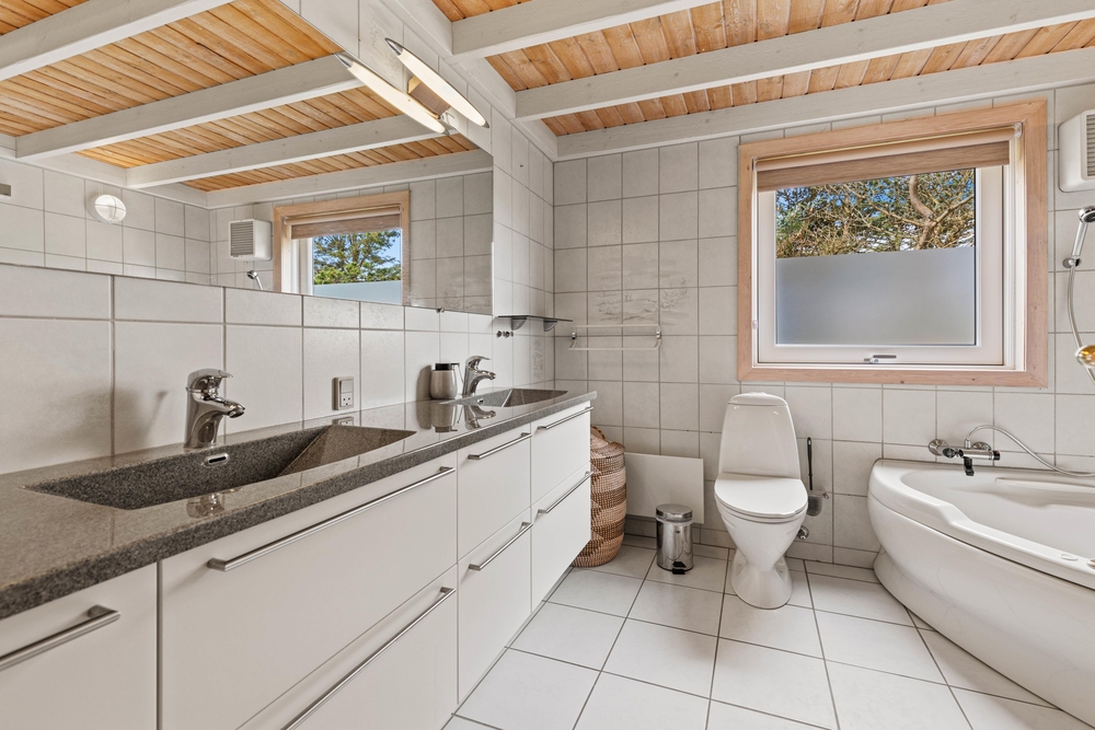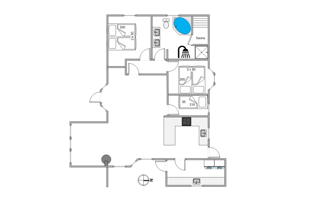 In diesem Ferienhaus für 5 Personen findet ihr 3 Schlafzimmer mit 2 Doppelbetten und 1 Einzelbett. Mit einer Fußbodenheizung im Badezimmer bekommt keiner kalte Füße beim morgendlichen Zähneputzen. Nach einem Spaziergang am Strand sorgen ein wohltuendes Bad im Whirlpool und ein paar Saunagänge für Entspannung.