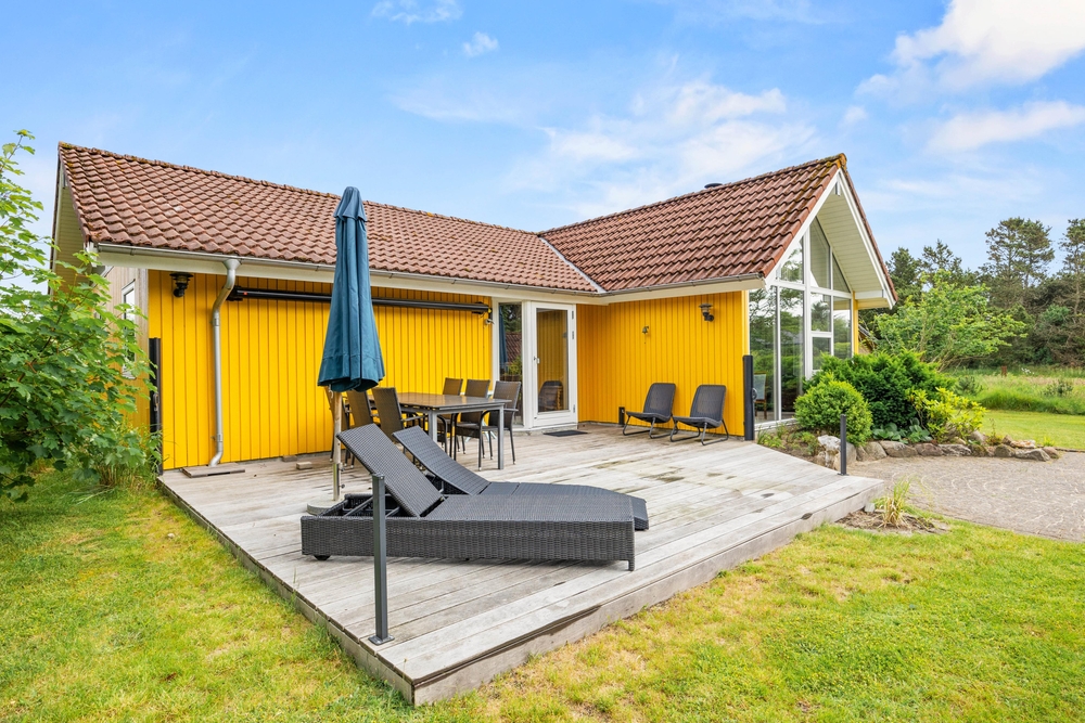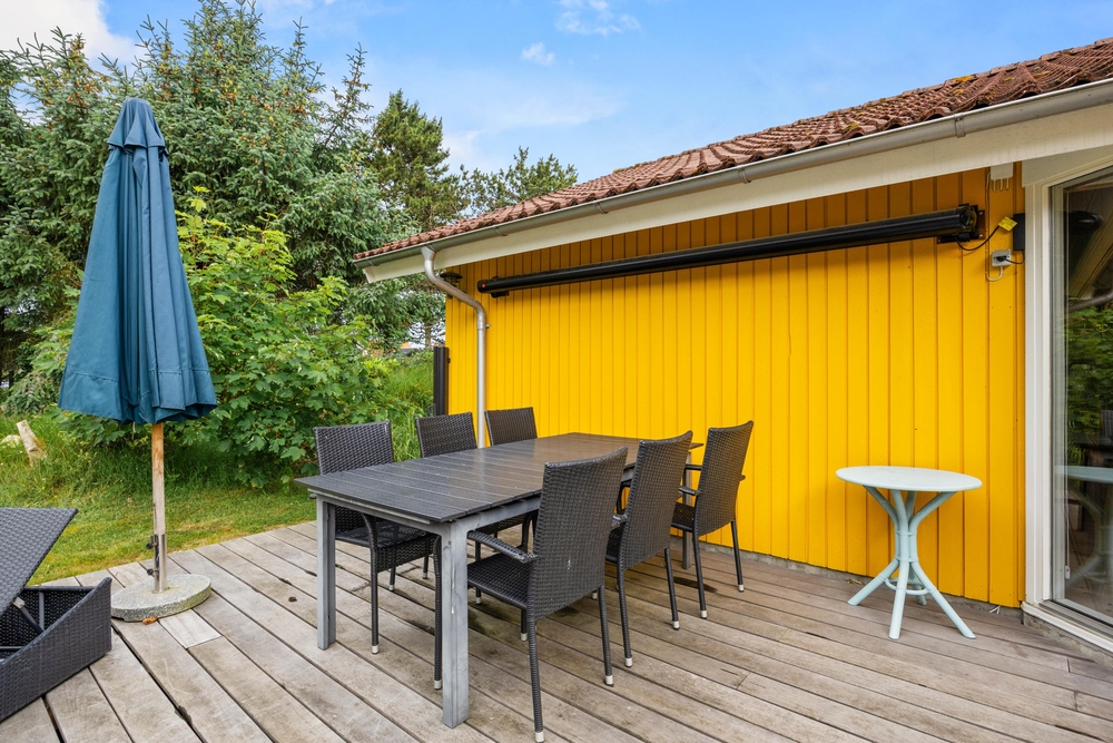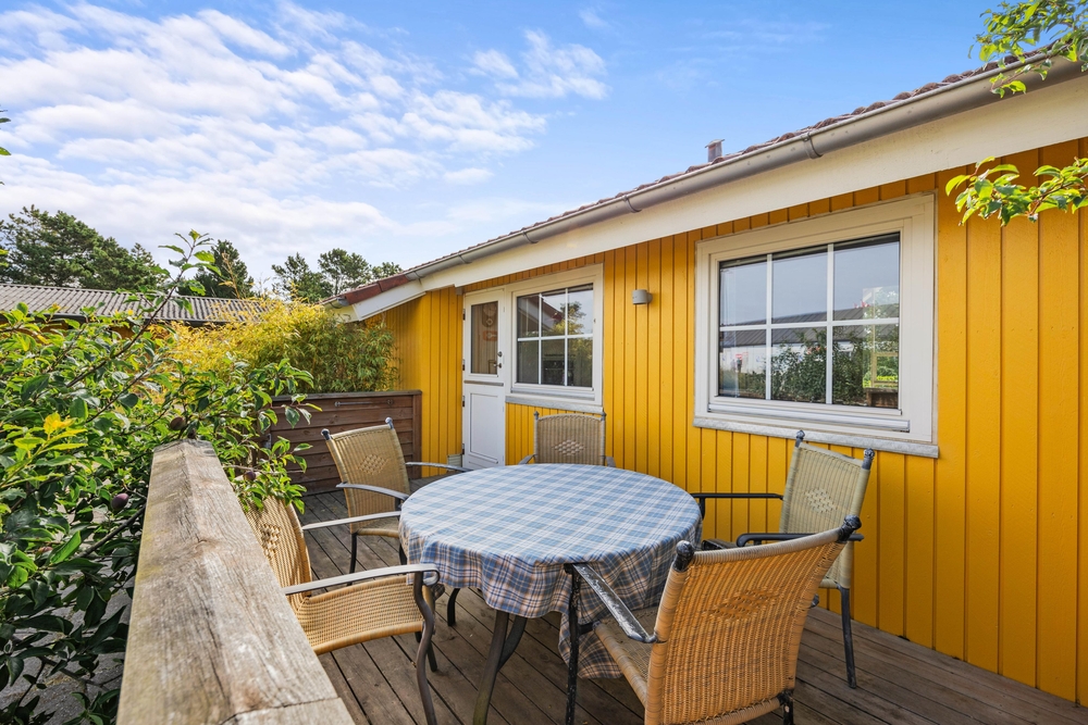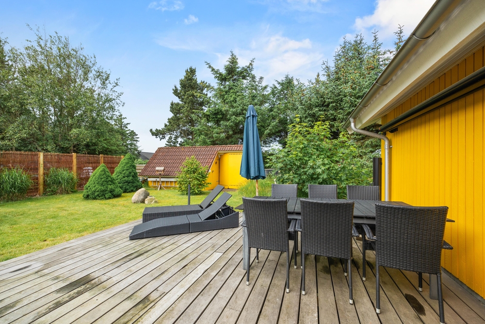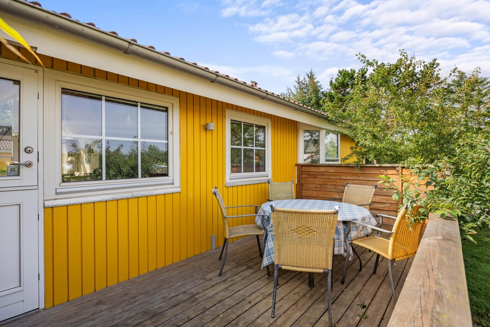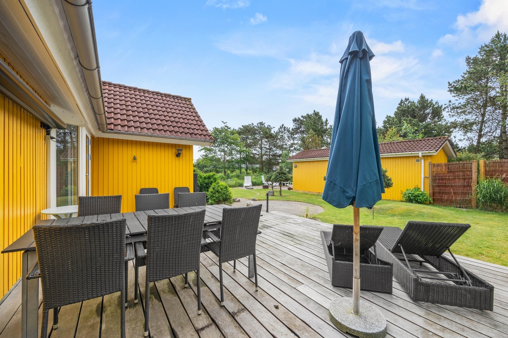 Das Ferienhaus verfügt über 2 Terrassen ? eine vorne und eine hinter dem Haus. Auf der hinteren Terrasse mit Aussicht auf ein schön angelegtes Naturgrundstück, stehen Gartenmöbel und auch ein Grill zur Verfügung. Tagsüber könnt ihr hier die Sonne genießen und später gemütliche Grillabende mit einem Glas Wein verbringen.