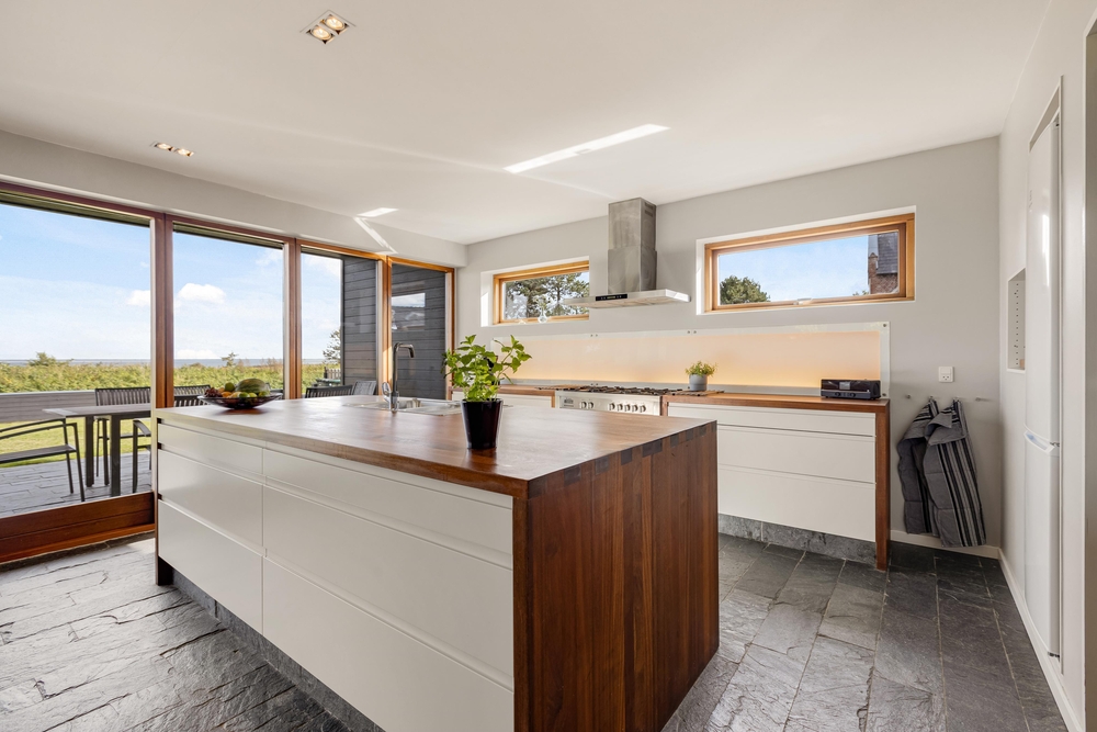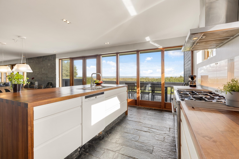 In der offenen Küche habt ihr viel Platz, um gemeinsam zu kochen und das eine oder andere köstliche Menü zu zaubern. Die Ausstattung umfasst unter anderem eine Spülmaschine, eine Mikrowelle, einen Kühlschrank mit 60 l Gefriermöglichkeit und einen exklusiven Gasherd. Das Ferienhaus kann komplett mit den energiesparenden Wärmepumpen beheizt werden. Im gesamten Haupthaus gibt es Fliesenböden mit Fußbodenheizung vorhanden.
