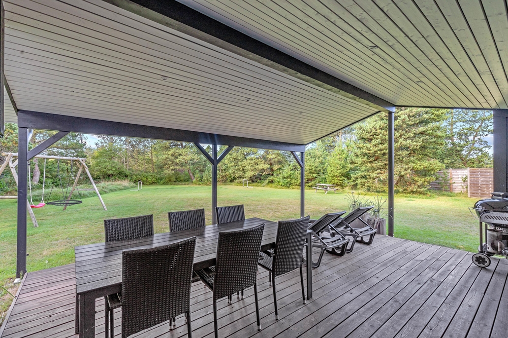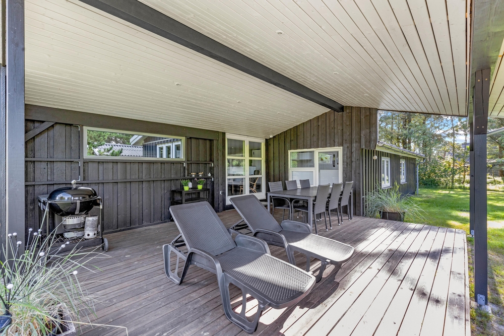 Das schöne Naturgrundstück liegt gut geschützt durch hohe Bäume von allen Seiten im Randgebiet von Blåvand. Ihr habt zwei Terrassen, auf denen ihr die Sonnenstrahlen während eures Dänemark Urlaubs genießen könnt. Außerdem steht euch ein grill zur Verfügung, die sowohl mit Kohle als auch mit Gas betrieben werden kann. Einem sommerlichen Grillabend mit einem kühlen Glas Rosé dazu steht also nichts im Weg.