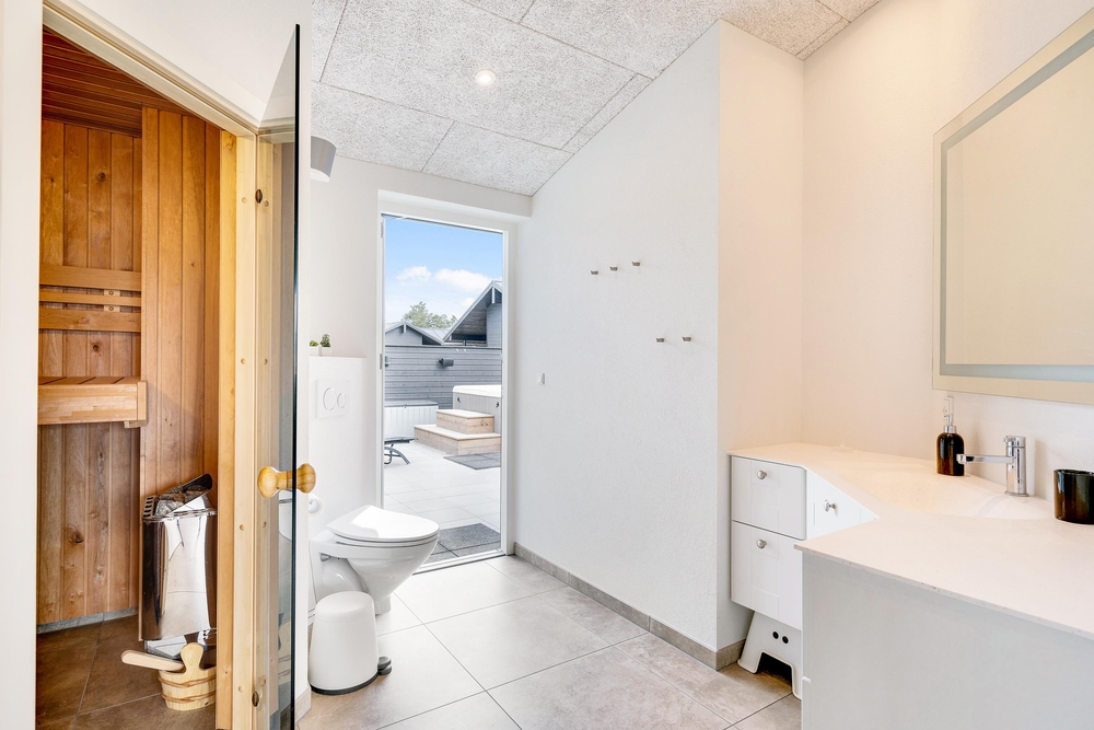 Das Ferienhaus ist praktisch eingerichtet und verfügt über 2 gute Badezimmer. Eines der Badezimmer bietet Zugang zur schönen Sauna des Hauses. Hier könnt ihr nach einem aktiven Tag an der frischen Luft so richtig entspannen und eure Energien neu aufladen.
