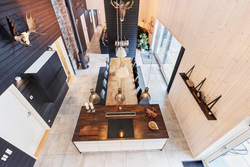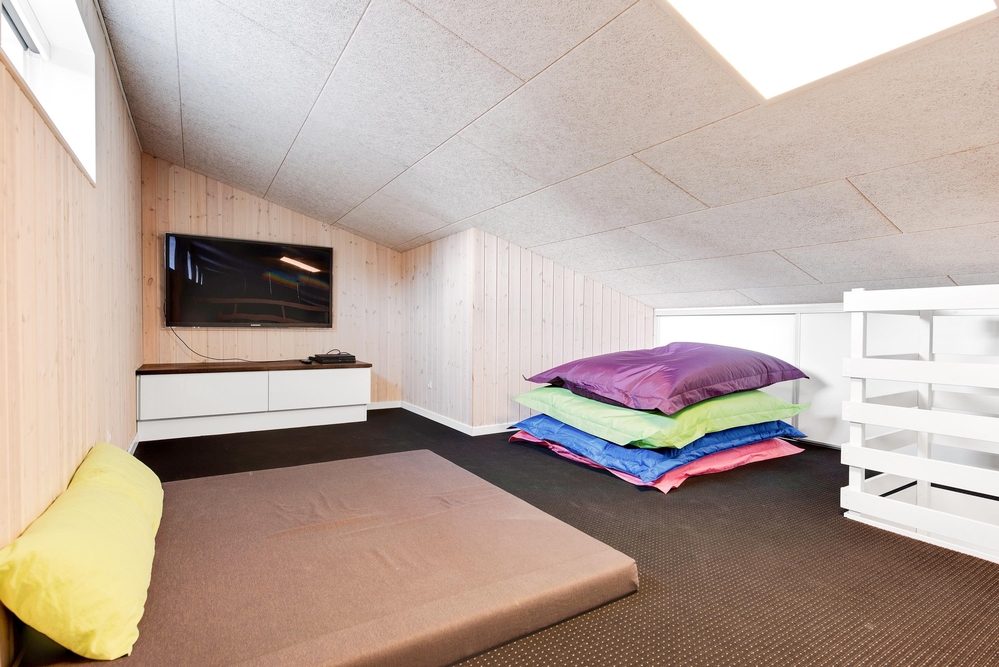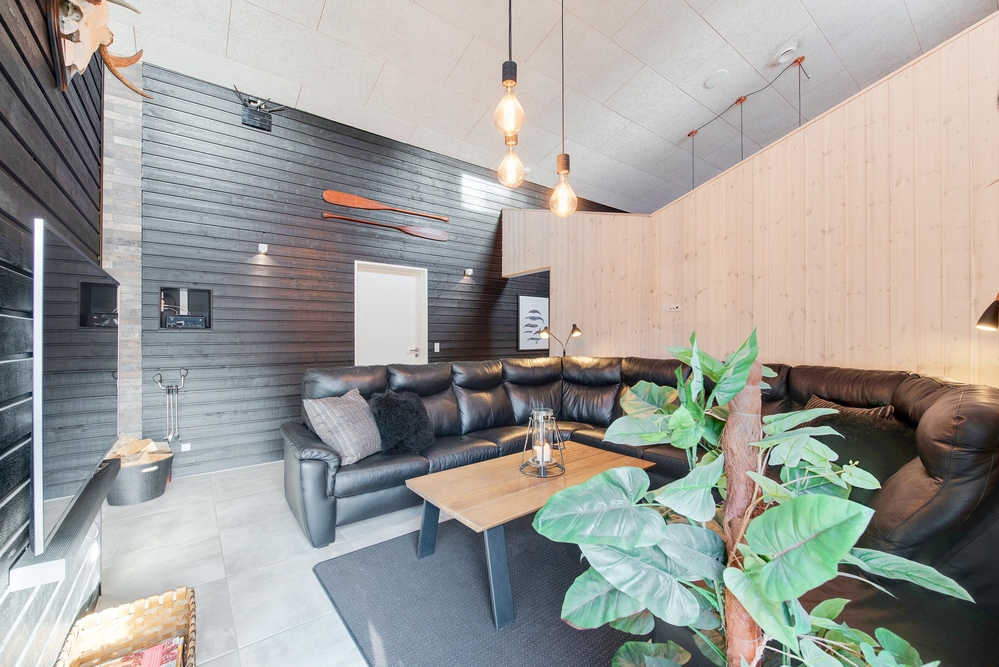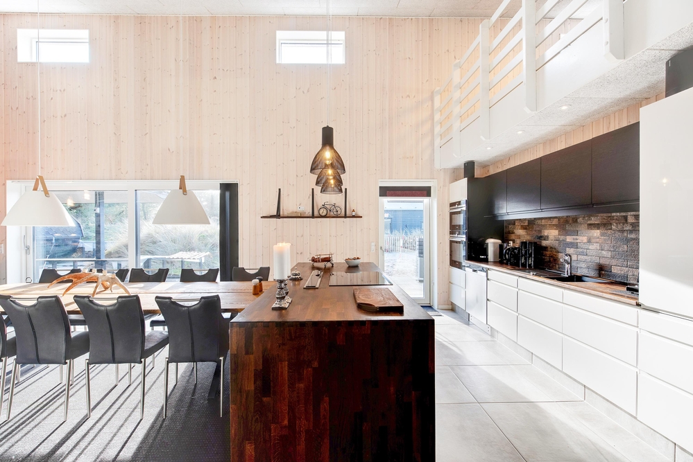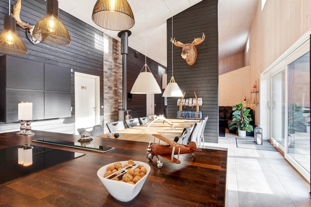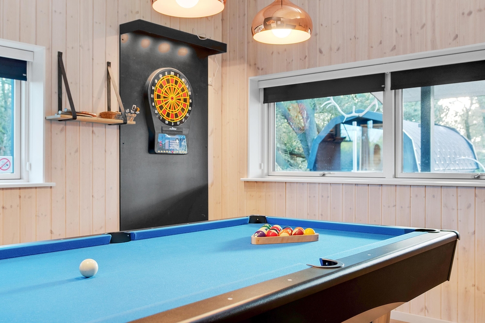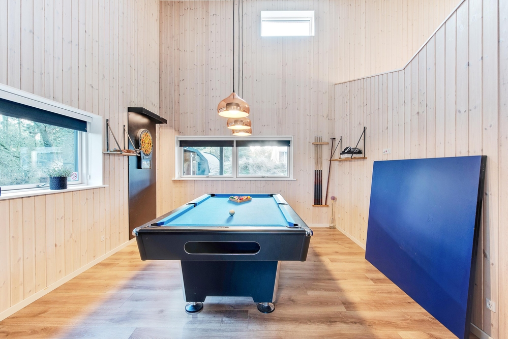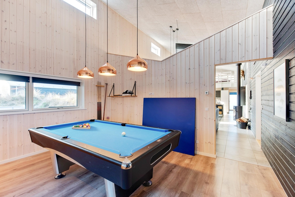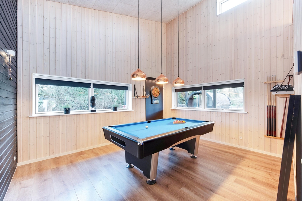 Das Herzstück des Ferienhauses ist der große offene Wohnbereich mit integrierter Küche und Essbereich. Hier habt ihr die Möglichkeit gemeinsam ein leckeres Menü zu zaubern oder im gemütlichen Wohnbereich die nächsten Ausflüge zu planen. Vom Wohnzimmer aus gelangt ihr in den Aktivitätsraum, dieser lädt zu einem Dart-, Billard- oder Tischtennisturnier ein.