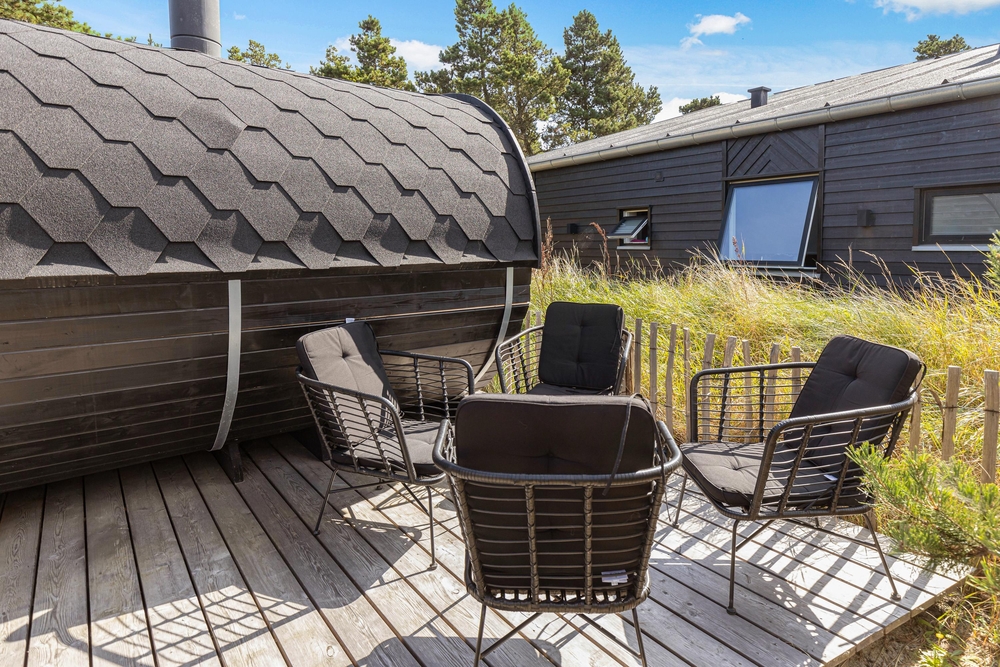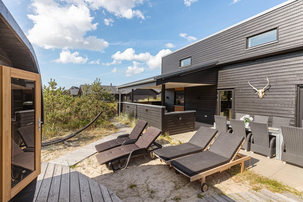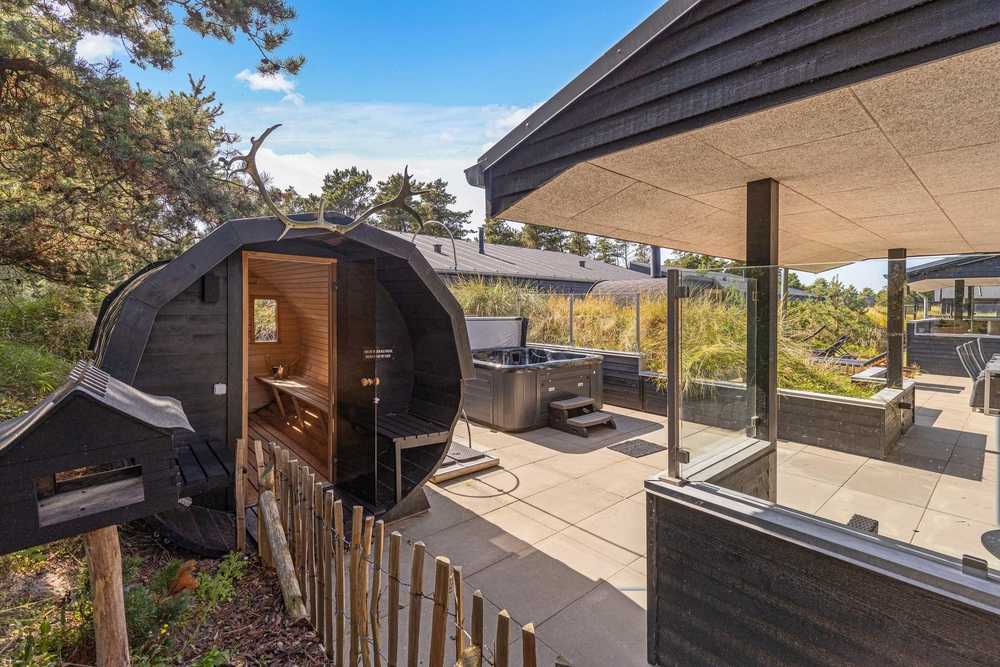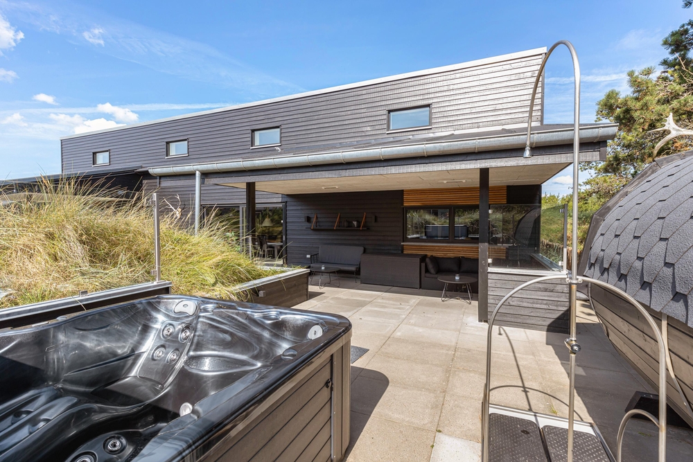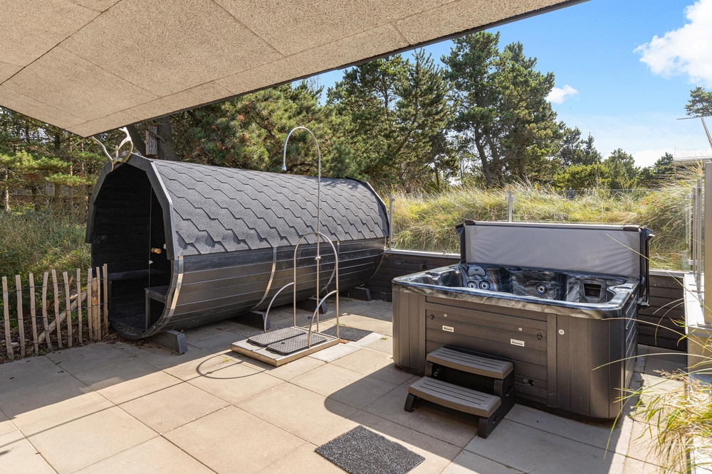 Der traumhafte Außenbereich verfügt über einige der Highlights des Hauses, nämlich eine Sauna und ein Whirlpool mit Platz für bis zu 4 Personen, für Wellnessliebhaber ein echtes Paradies. Solltet ihr nach einem Strandspaziergang sandige Füße haben, könnt ihr diese in der Außendusche vom 1. April bis zum 31. Oktober abspülen. Auf der Terrasse erwartet euch auch die gemütliche Grillhütte. Hier könnt ihr ungestörte Abende mit gutem Essen und guter Gesellschaft genießen.