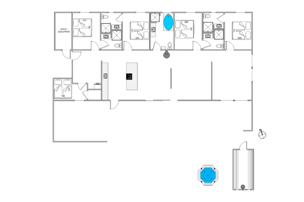 Dieses schöne Aktivitätshaus im Gl. Skolevej 24 wurde 2017 gebaut und verfügt über 199qm mit Platz für bis zu 10 Personen und 1 Hund. Qualität steht bei diesem Ferienhaus an erster Stelle, sei es bei der Wahl der Möbel, Farben und Materialien bis hin zur der hochwertigen Küchenausstattung, die das Gesamtpaket für einen gelungenen Luxusurlaub abrundet.