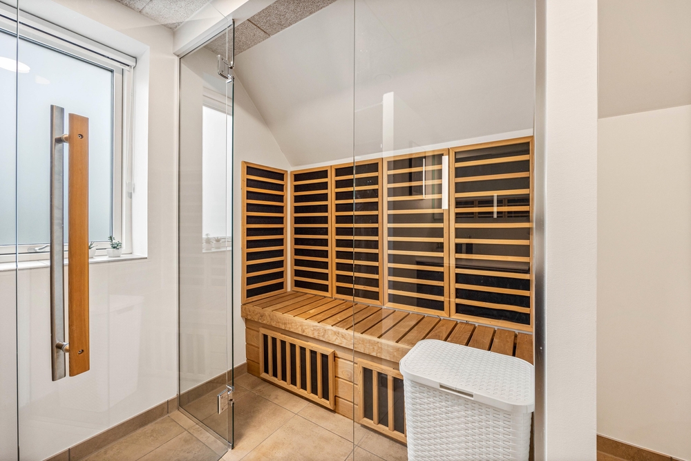 Entspannt wach werden, in einem der drei Badezimmer ist garantiert. Die Badezimmer sind alle mit Fußbodenheizung und Dusche ausgestattet, sowie Eines mit einer modernen Infrarotsauna.