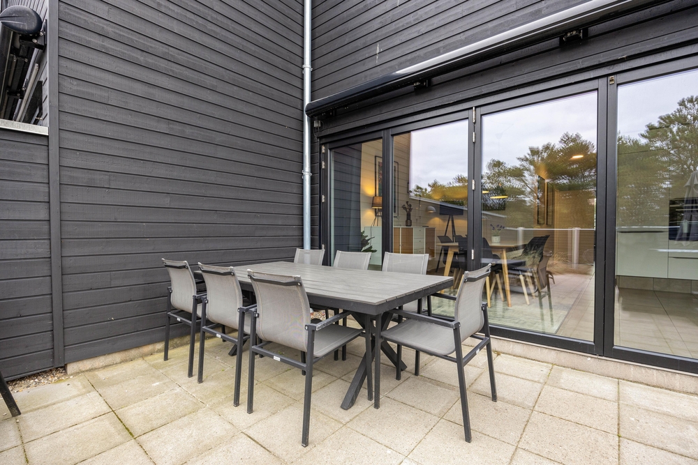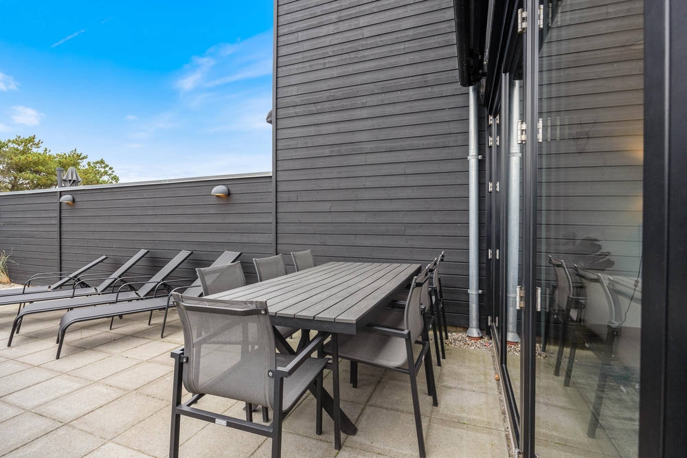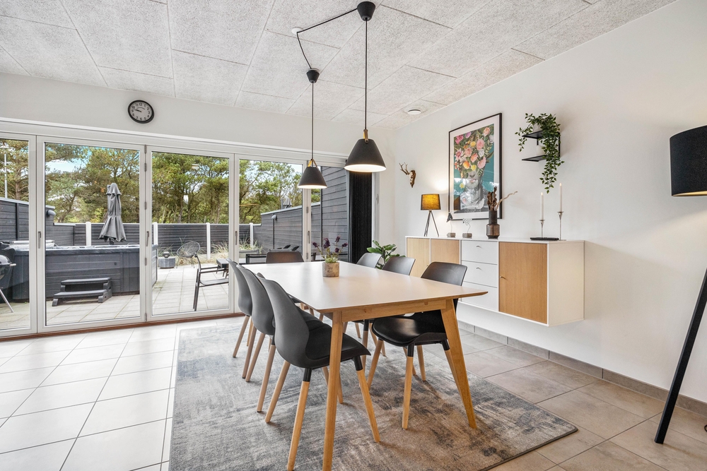 Ein absolutes Highlight in diesem Ferienhaus ist mit Sicherheit der Außenwhirlpool auf der geschützten Terrasse. Egal ob tagsüber, oder am Abend unter dem einmaligen Sternenhimmel der dänischen Westküste, im Außenwhirlpool könnt Ihr Euch im warmen Wasser so richtig entspannen und runterfahren.