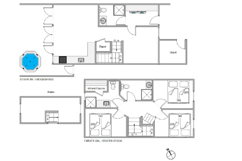 Die 133 m² verteilen sich auf zwei Etagen, mit einem zusätzlichen, kleinen Dachboden. In den drei Schlafzimmern mit jeweils drei Doppelbetten, könnt Ihr Euch vom Alltag erholen. Auf dem Dachboden habt Ihr einen gemütlichen Rückzugsort, wo auch noch zwei extra Schlafplätze sind. Die Kinder werden Ihn lieben.