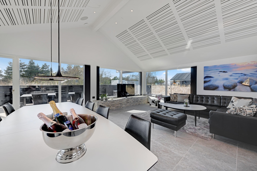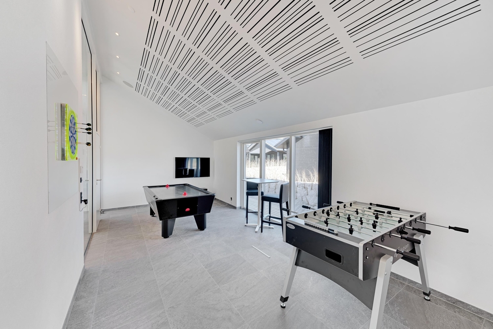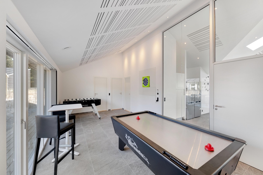 Seid ihr auf der Suche nach einem etwas aussergewöhnlichen Ferienhaus? Dann ist Gl. Skolevej 8 in einem Neubaugebiet die perfekte Adresse! Das Fünf-Sterne-Ferienhaus bietet Platz für bis zu 8 Personen (und 2 Hunde) und ist mit tollem Interieur für jeden Geschmack ausgestattet; Inklusive Sauna, Whirlpool, Aussenwhirlpool auf der Terrasse und nicht zuletzt einem Aktivitätsraum mit Tischfussball, Airhockey und Dart.