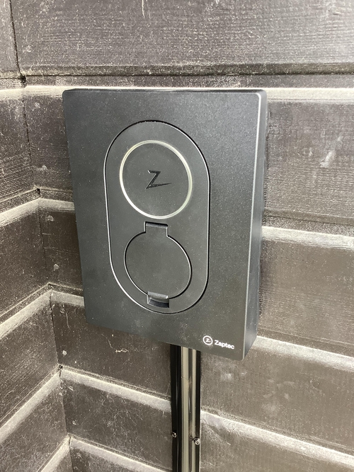 Die Lademöglichkeit für das Elektroauto ist eine Ladestation, relevantes Kabel ist mitzubringen (Typ 2)