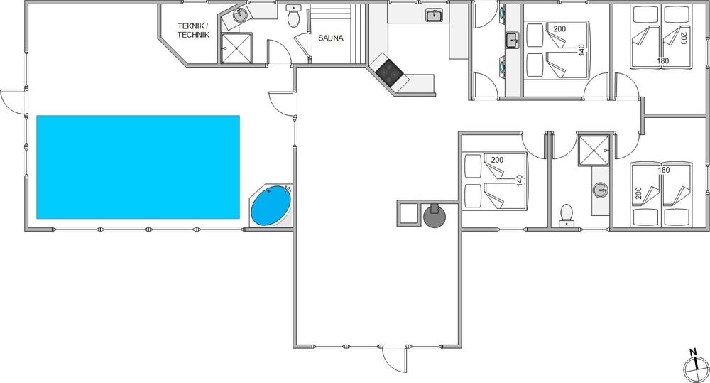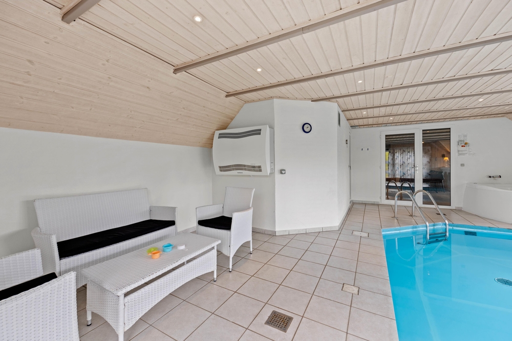 Neben dem Wohnbereich liegt der große Poolraum, wo sich auch der Whirlpool befindet. Hier könnt ihr stundenlangen Spaß für Jung und Alt genießen. Während die Kleinen im Pool planschen, können sich die Erwachsenen im Sprudelbad entspannen.