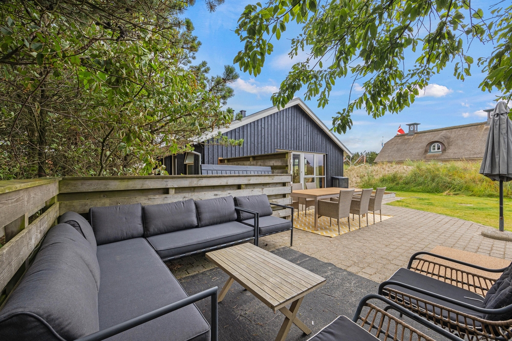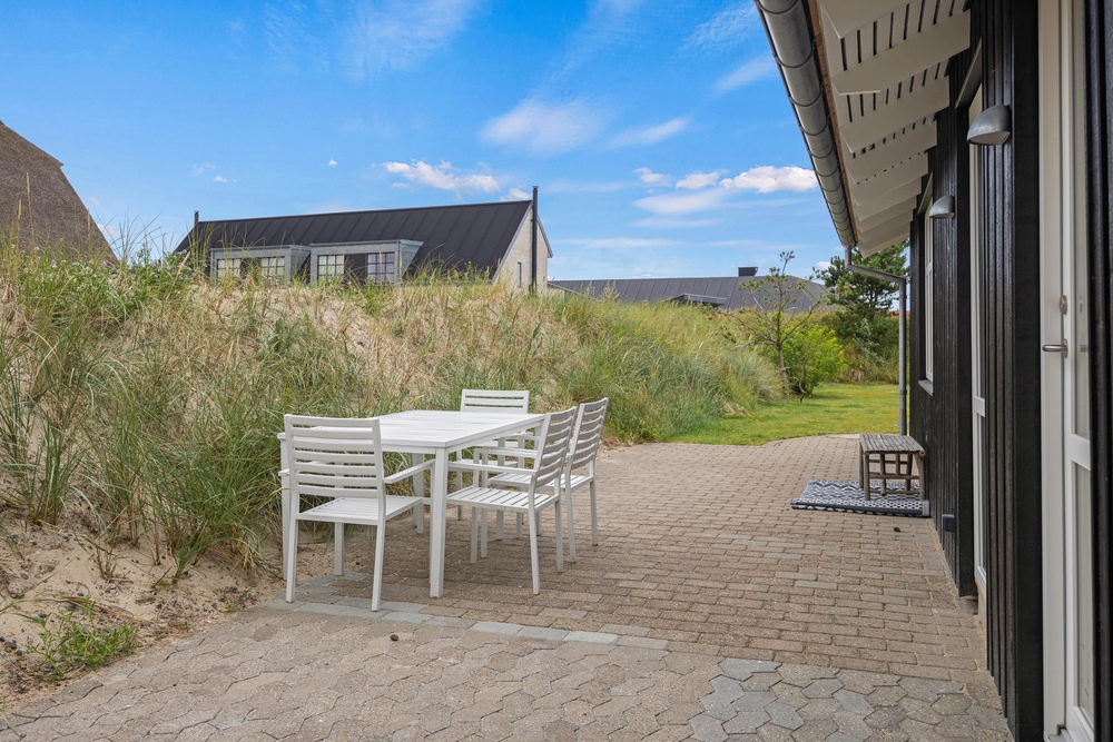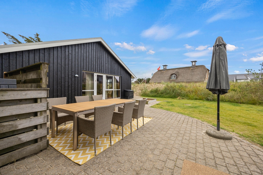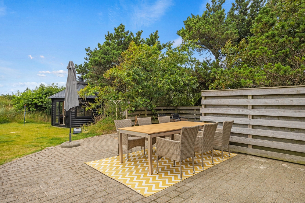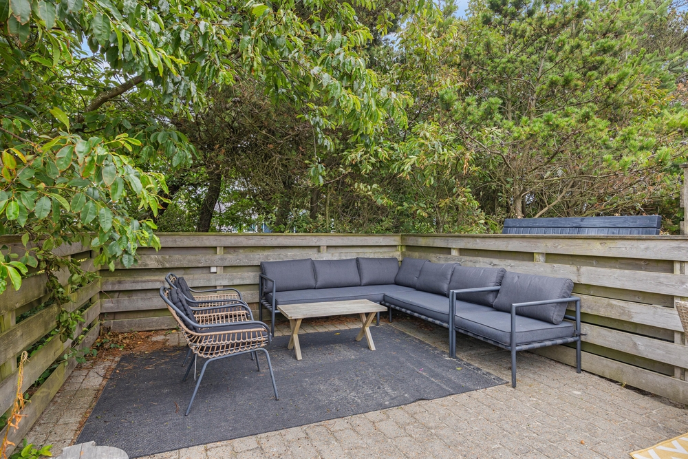 Das Ferienhaus hat eine offene Terrasse, auf die Ihr euren Urlaub verlegen könnt, wenn das Urlaubswetter Sonnenschein bietet. Hier stehen sowohl Gartenmöbel als auch Sonnenliegen zur Verfügung, sodass Ihr euch bequem zurücklehnen könnt, um die Sonne zu genießen.