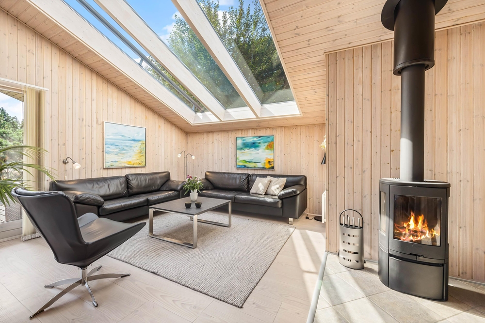 Die Umgebung wirkt hell und freundlich und zugleich findet ihr einen Hauch des klassischen Ferienhauscharmes. Dafür steht der u.a. obligatorische Holzofen, welcher das ganze Jahr über Wärme und eine so angenehme Atmosphäre bietet.