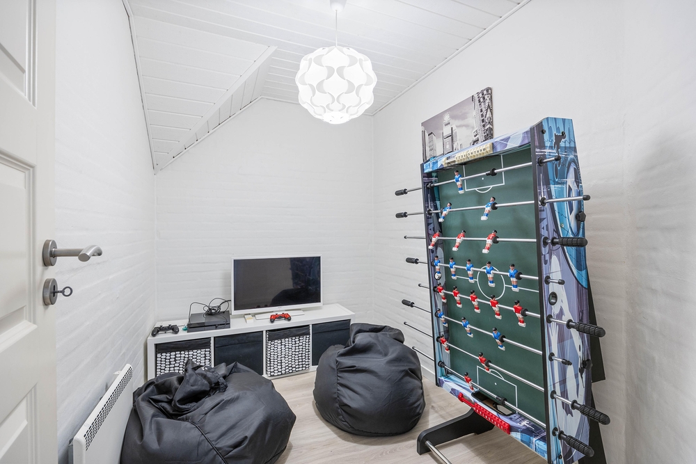 Im Ferienhaus ist eine energiesparende Luft-Luft-Wärmepumpe installiert, die das ganze Jahr über für eine angenehme Temperatur im Ferienhaus sorgt. Ihr müsst euch keine Sorgen machen, wenn die Kleidung mal schmutzig wird, denn in der Eingangshalle, befinden sich die praktischen Alltagshelfer, die Waschmaschine und der Wäschetrockner. Zudem steht eine Playstation 4 zur Verfügung, an dem es bestimmt lustige Spieleabende geben wird.