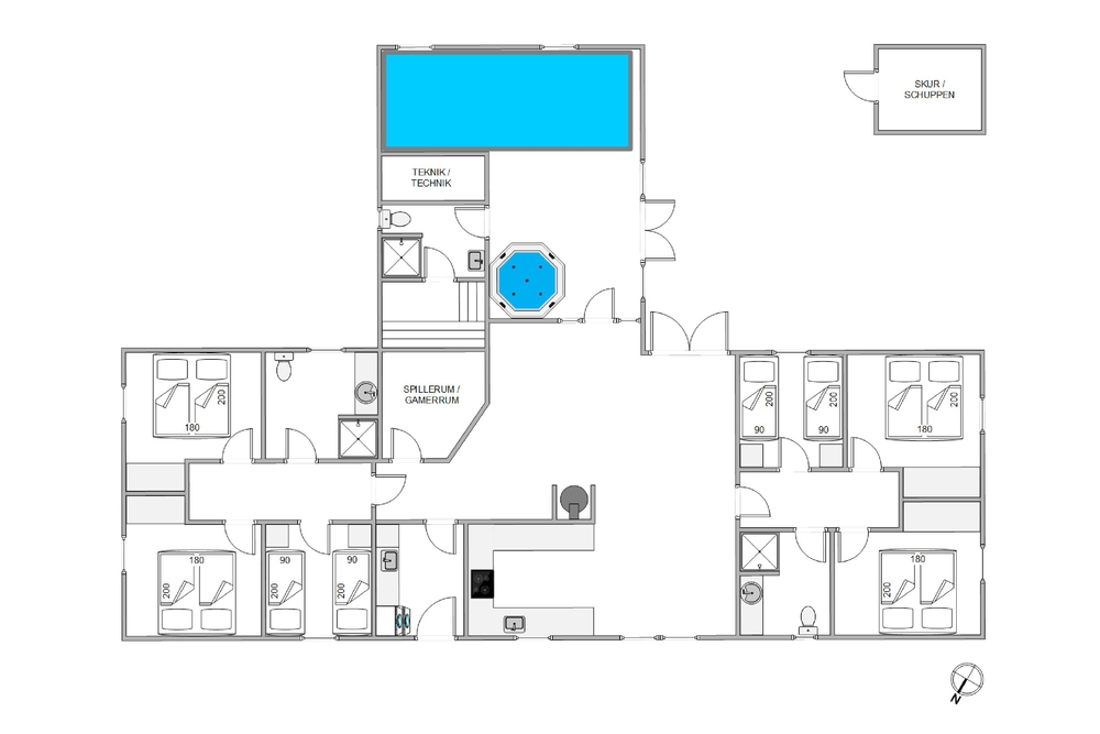 Ihr seid auf der Suche nach einem großen Poolhaus, dass für mehrere Familien oder eure Großfamilie geeignet ist? Dann wäre das große Poolhaus am Græmvej 29 in Vester Husby ein großartiger Platz für euch. Das 213 m2 große Ferienhaus kann bis zu 12 Personen beherbergen und verfügt über einen Pool, einen Whirlpool und eine Sauna. In diesem schönen Poolhaus sind auch eure 2 Hunde herzlich willkommen.