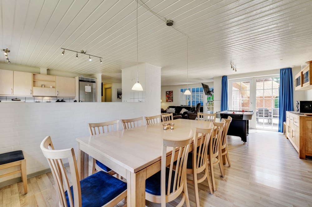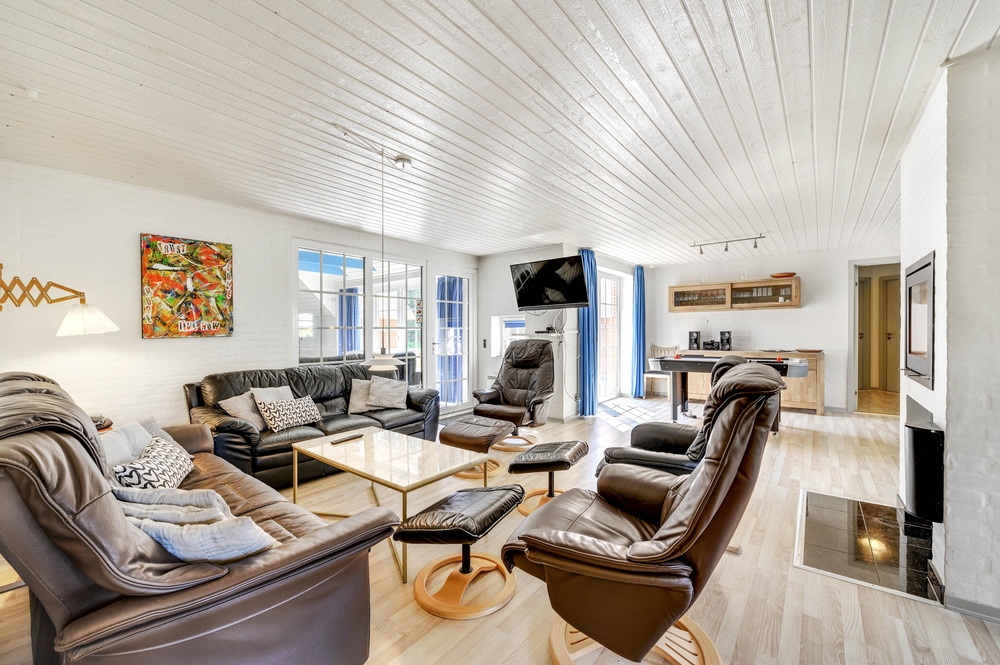 In diesem Ferienhaus an der Westküste Dänemarks kommt jeder auf seine Kosten. Besonders Kinder oder Jung gebliebende können sich entweder im eigenen Pool vergnügen oder am Tischkicker kleine Turniere spielen. Für alle anderen, die sich einfach nur entspannen wollen, steht der Wellness-Bereich bereit, um einmal so richtig die Seele baumeln zu lassen.