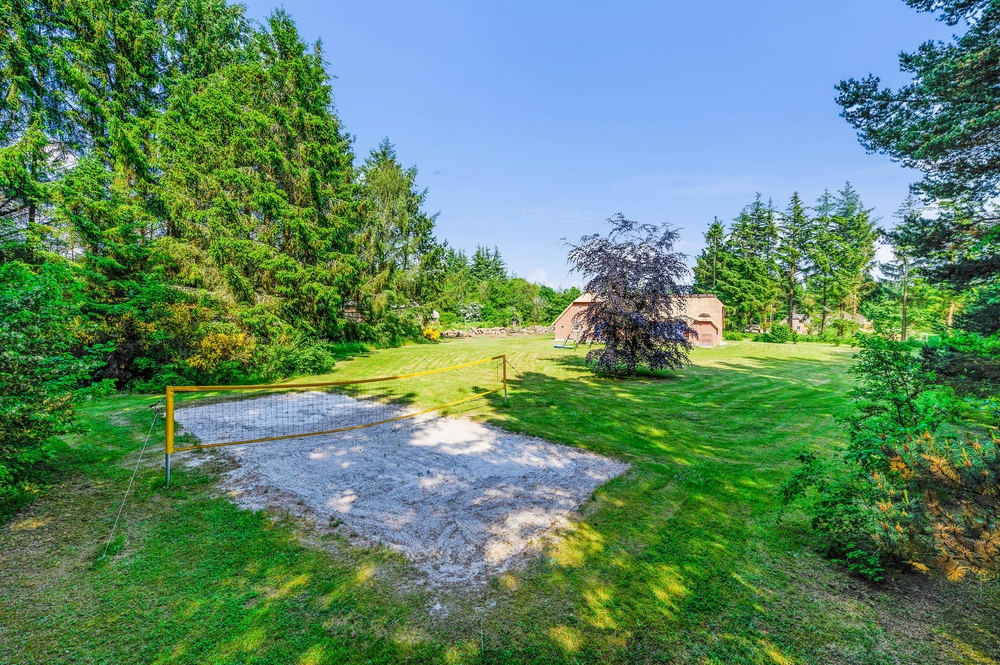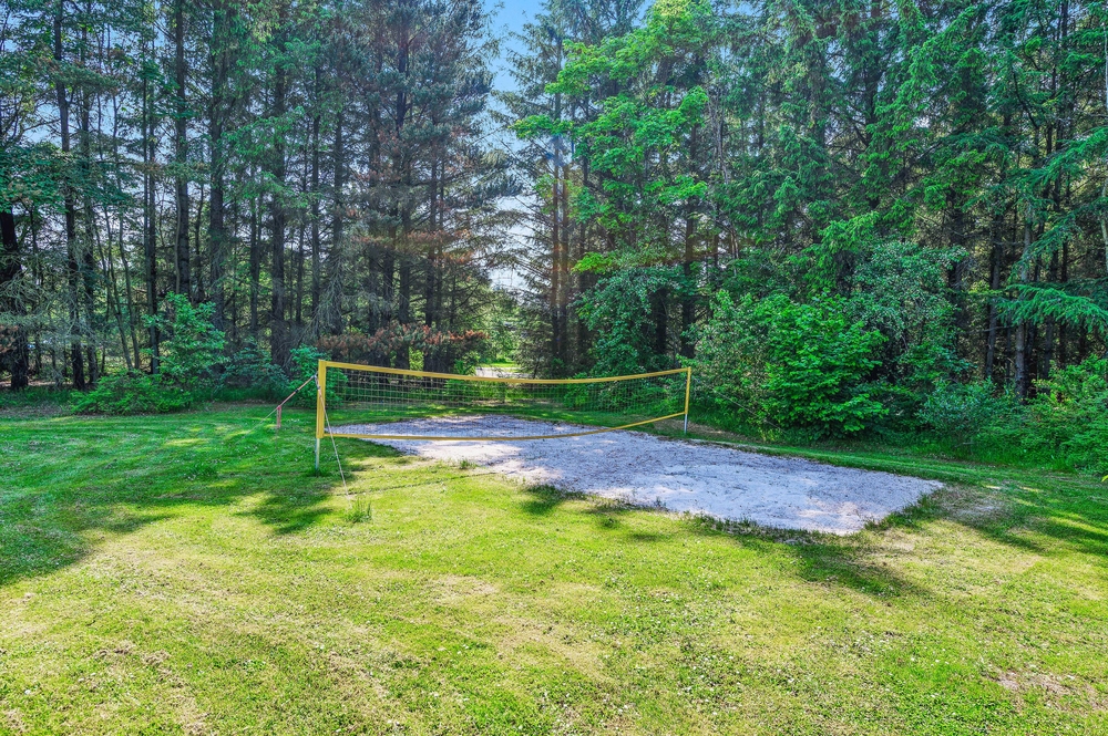 Ihr habt auch einen eigenen Volleyballplatz und einen Sandkasten und eine Schaukel für die jüngsten Urlauber. Im Nebengebäude findet ihr alles von Bällen für den Volleyballplatz und Brennball bis hin zum Wikingerschach und Boule.
