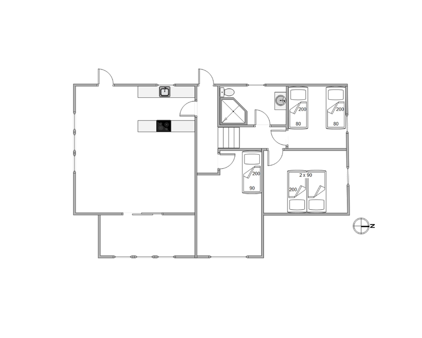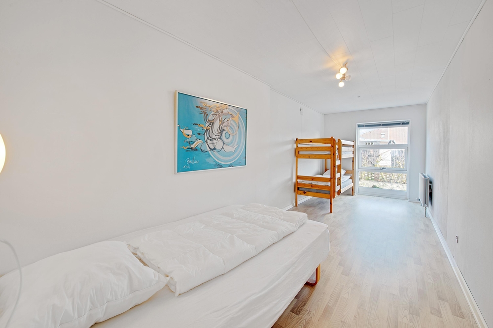 Dieses Ferienhaus verfügt über 3 helle Schlafzimmer, ein Zimmer mit einem Doppelbett, ein Zimmer mit 2 Einzelbetten und ein Zimmer mit einem Einzelbett. Das Badezimmer ist mit Fußbodenheizung ausgestattet. Darüber hinaus gibt es im Haus auch eine Waschmaschine sowie einen Wäschetrockner.