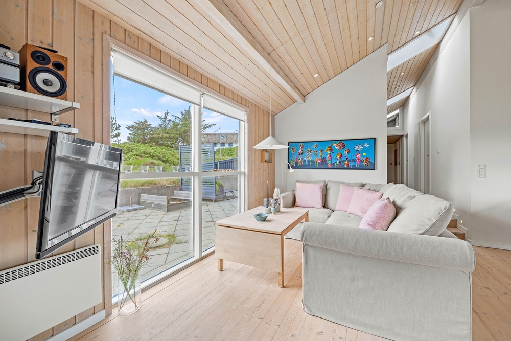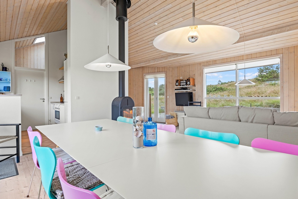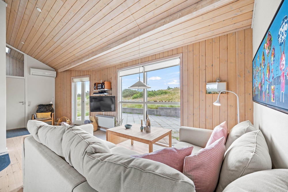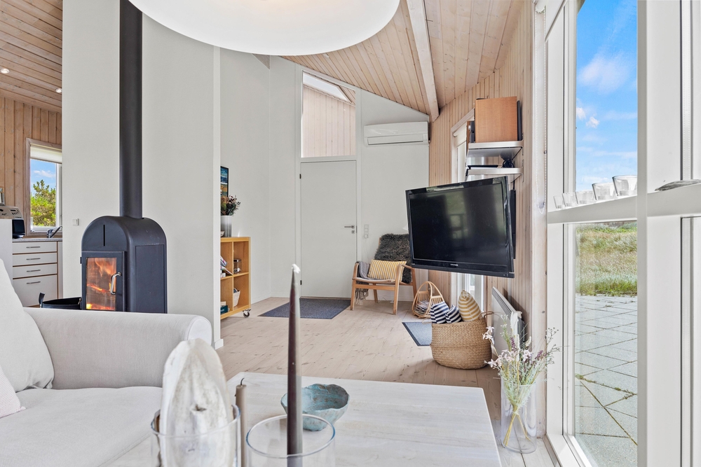 Das Ferienhaus in Grærup Strand besticht durch seine gemütliche Atmosphäre und umfassende Ausstattung. Der freundlich gestaltete Wohnbereich bietet euch einen modernen Fernseher und einen Kaminofen, der an kühleren Abenden wohlige Wärme und eine hyggelige Atmosphäre schafft. Die energiesparende Wärmepumpe sorgt für ein angenehmes Raumklima.