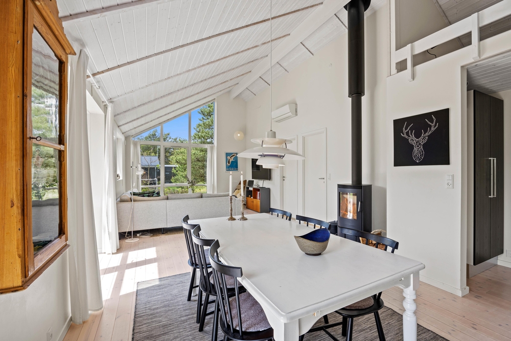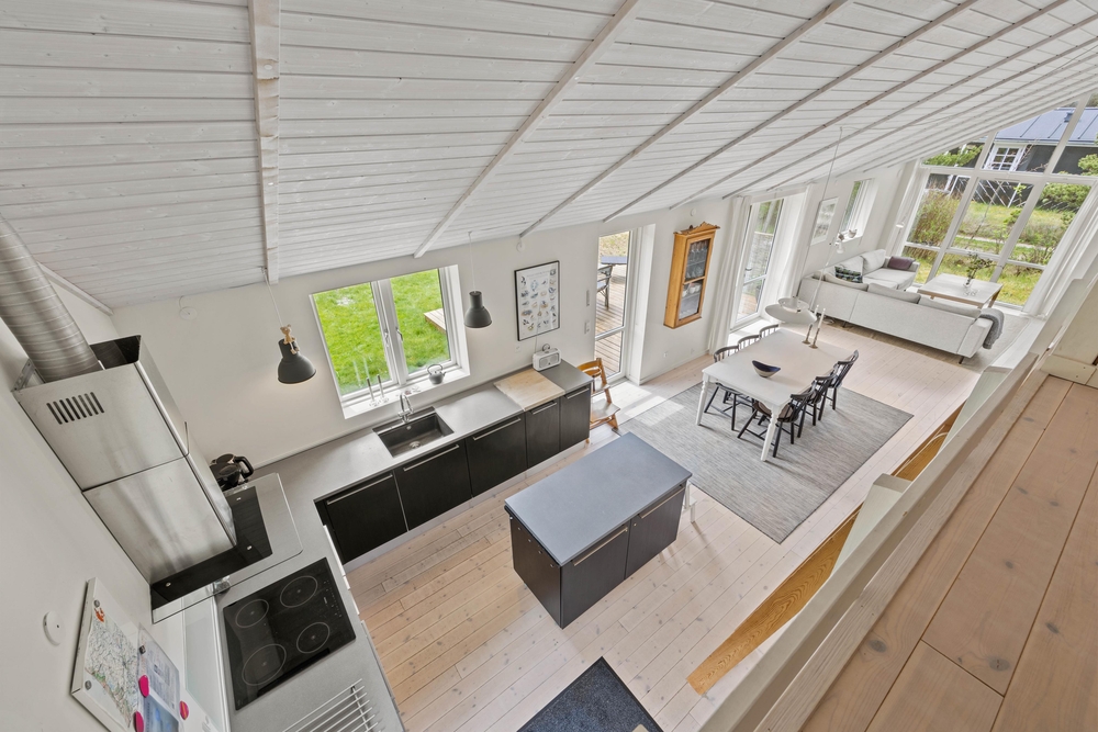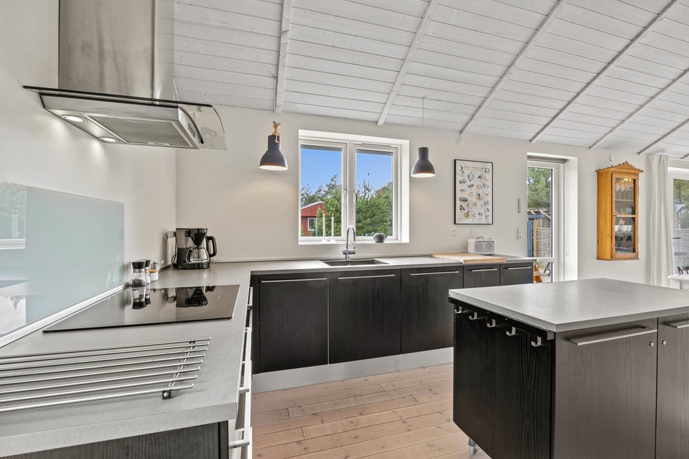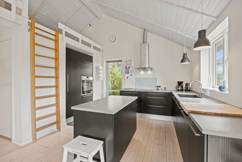 Im Grærup Havvej 22 kommt ihr an, und werdet euch garantiert sofort wohlfühlen. Schnell auspacken, und dann kann es mit der dänischen Gemütlichkeit und dem stressfreien Ferienalltag direkt losgehen. Der Mix aus viel Holz, hellen Farben und Textilien mit der tollen, modernen Küche in dunklen Farben, geben dem Wohnbereich ein tolles Ambiente. In der großen Küche mit einem Küchenblock in der Mitte, werden bestimmt alle gerne bei den Essensvorbereitungen mithelfen. Oder vielleicht doch von oben zuschauen? Über eine Leiter geht es auf einen kleinen Dachboden ? dort kann man super hochklettern, es sich gemütlich machen und die anderen in der Küche beobachten.