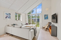 Im gesamten Wohnbereich, mit den hohen ausgebauten Dachschrägen, habt ihr einen traumhaften Lichteinfall, und natürlich somit auch einen schönen Ausblick nach draußen auf das Grundstück. Auf dem bequemen Ecksofa haben alle Platz, falls ihr mal Lust auf einen spannenden Filmeabend habt.