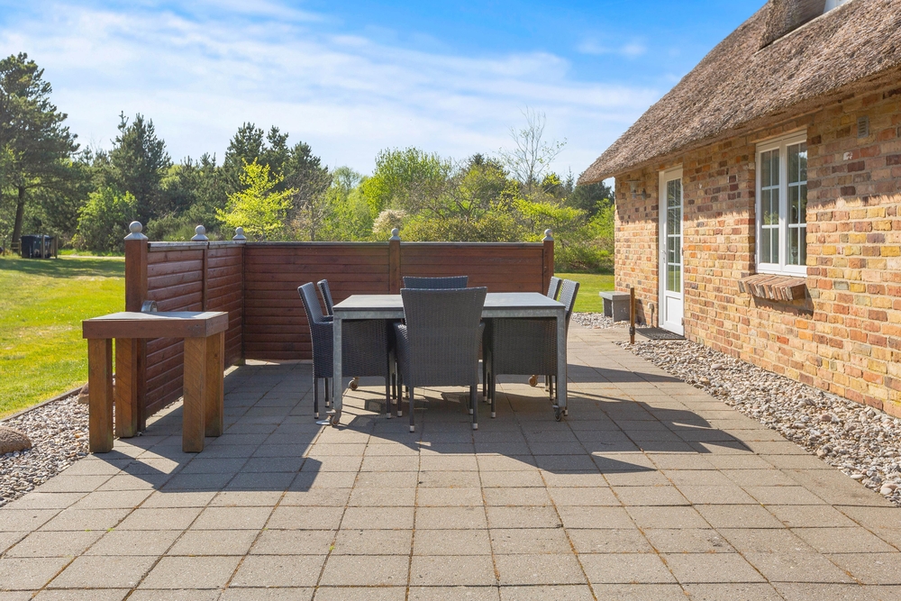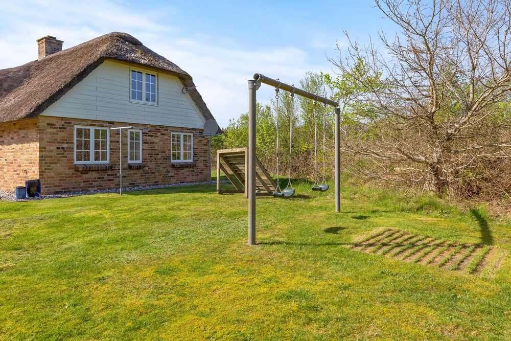 Das reetgedeckte Ferienhaus am Grævlingevej 24 strahlt echte Ferienidylle aus und hier könnt ihr einen erholsamen Familienurlaub in aller Ruhe verbringen. Die freundliche Einrichtung schafft eine heimelige Atmosphäre und die hohen Decken im Wohnzimmer lassen die Umgebung grosszügig und offen erscheinen.