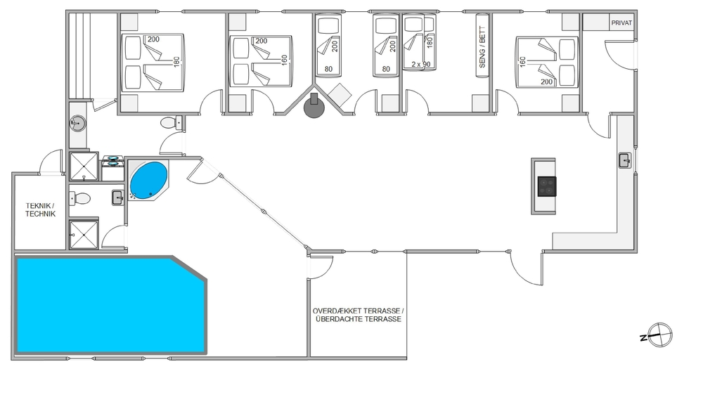 Lichtdurchflutet und offen, so präsentiert sich dieses 168m2 große Ferienhaus für 11 Personen und 2 Hunden in Lodberg Hede. Starte den Tag mit einem ausgiebigen Frühstück im offene Essbereich und genieße die ersten Sonnen strahlen des Tages. Entspanne dich beim Lesen eines guten Buches oder drehe deine Runden im Pool mit Gegenstromanlage, bevor du dich auf den Weg zum Strand machst. Der Pool hat übrigens eine Tiefe von 120 cm und hat auch einen Kinderbereich mit einer Tiefe von 30 cm. Zurück im Ferienhaus wartet der Whirlpool auf dich, von dem es dann zum Kochen in der gut ausgestatteten Küche geht. Vor dem Essen könnt ihr dann noch den Meister im Tischfußball küren.