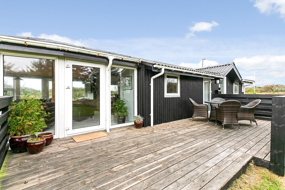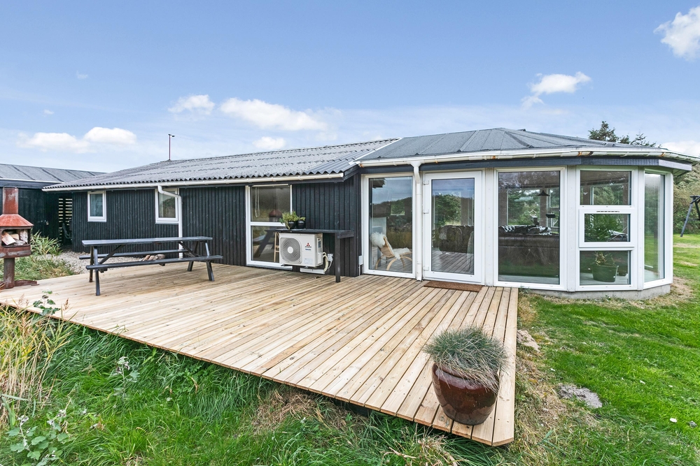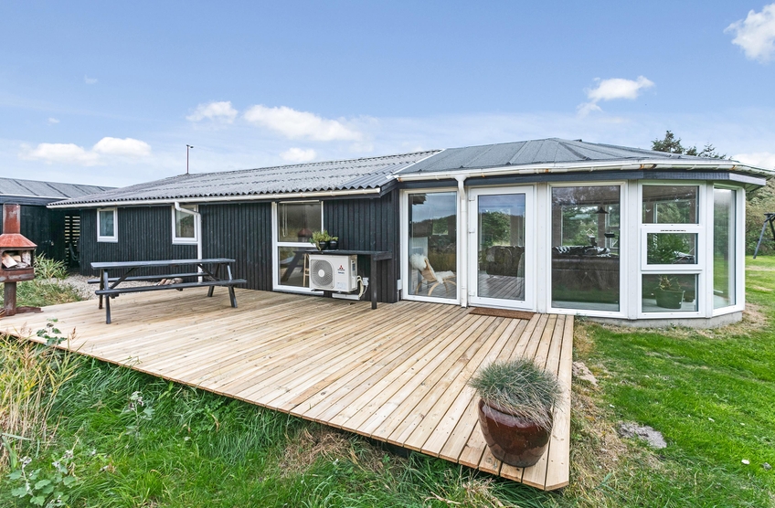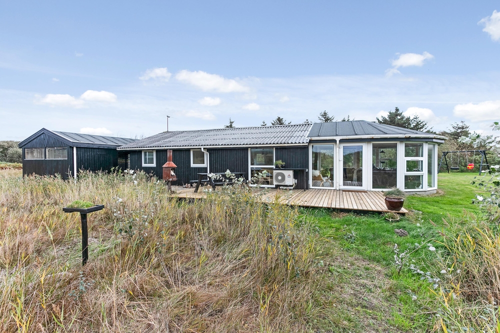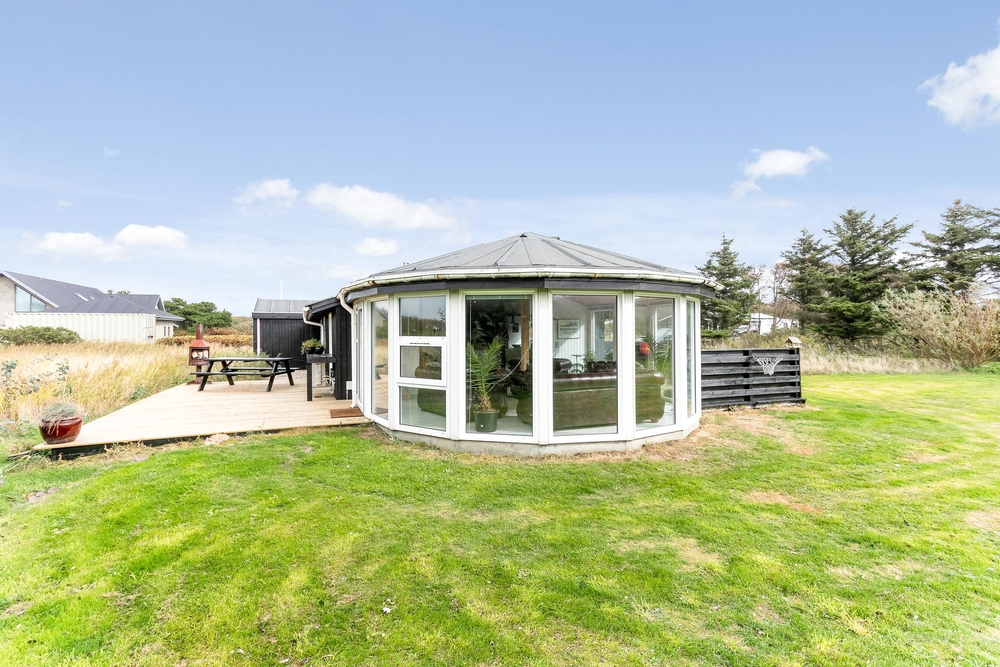 Im Gransangervej 3 im naturschönen Lodbjerg Hede, unweit des Ferienortes Søndervig und der tosenden Nordsee, liegt dieses spannende Ferienhaus auf einem schönen Naturgrundstück. Es bietet Platz für bis zu 4 Personen, ist also ideal für die kleine Familie oder für romantische Ferien zu zweit. Dieses untradionelle Ferienhaus erwartet euch mit schönen Naturmaterialien und spannenden Möbeln, einem lichtdurchfluteten Wintergarten und tollen Sonnenterrassen in einer naturschönen Umgebung.