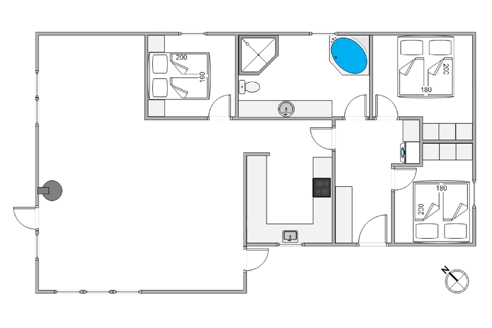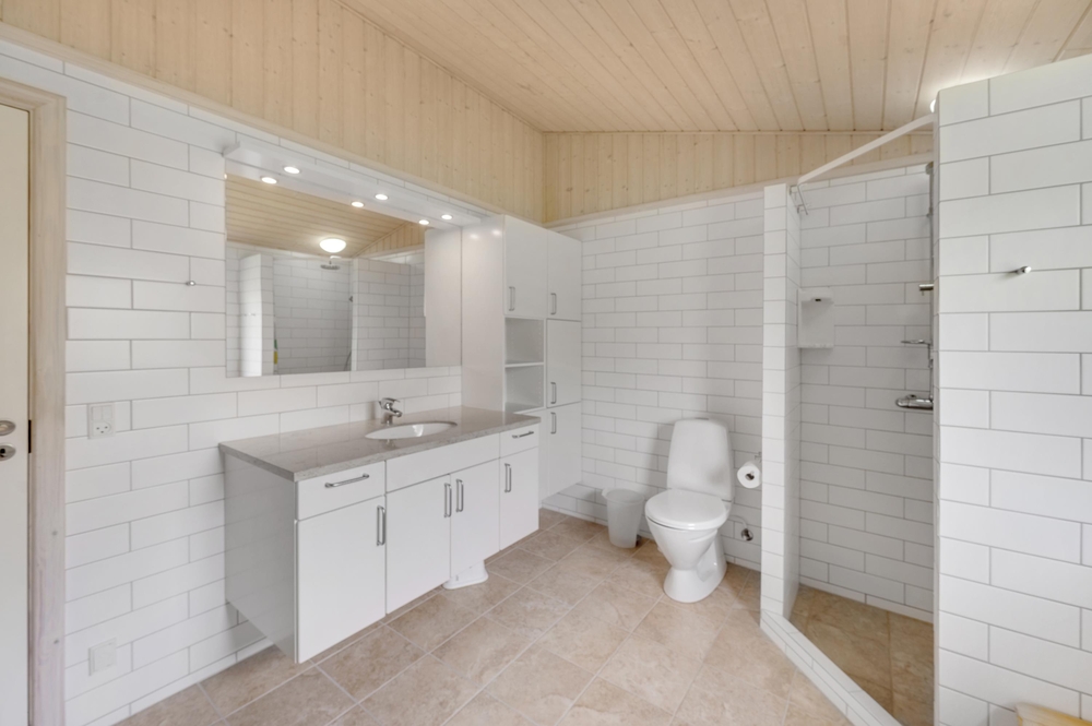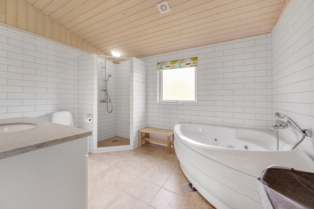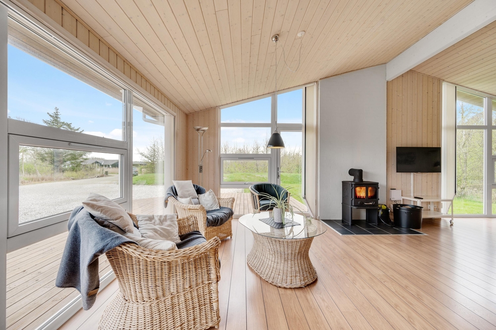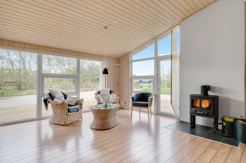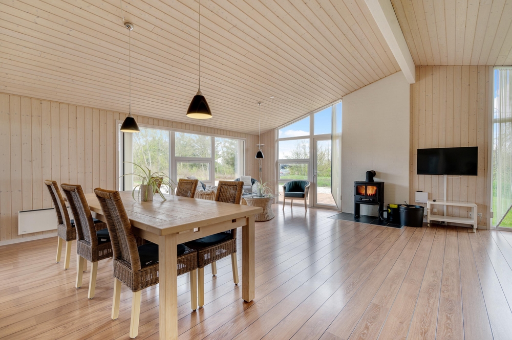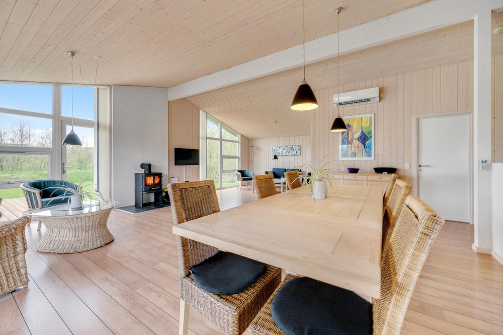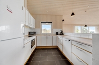 Die gut ausgestattete Küche liegt leicht abgetrennt vom Wohnraum aber dennoch mitten im Geschehen. Hier könnt ihr gemeinsam kochen und gleichzeitig Pläne für den nächsten Tag schmieden. Für den Abwasch danach sorgt der Geschirrspüler, somit bleibt Zeit für ein Kartenspiel oder ihr heizt den Kamin an, lauscht dem Knistern des Feuers und legt einfach ganz entspannt die Füße hoch, schon ist das Gefühl von einem klassischen Ferienhausurlaub in Dänemark erreicht.