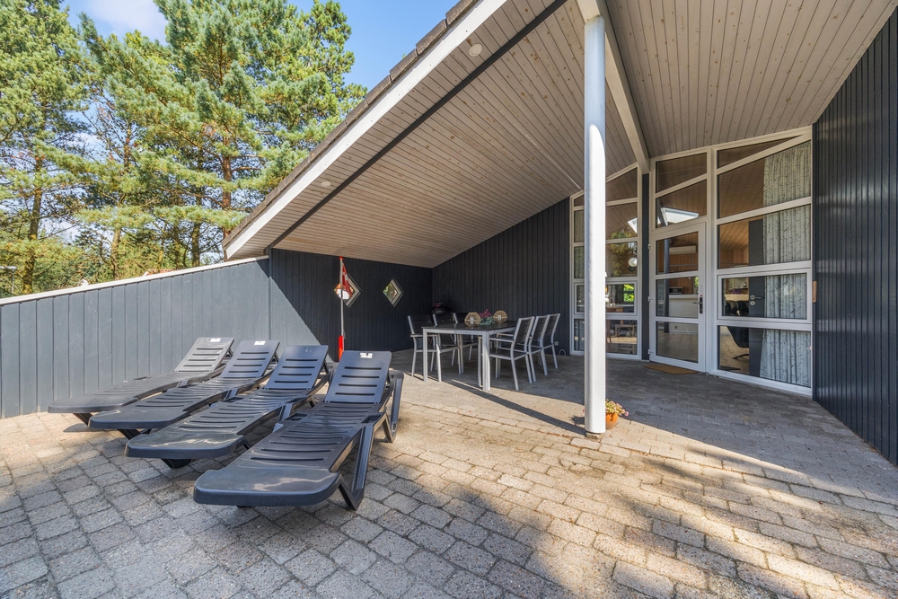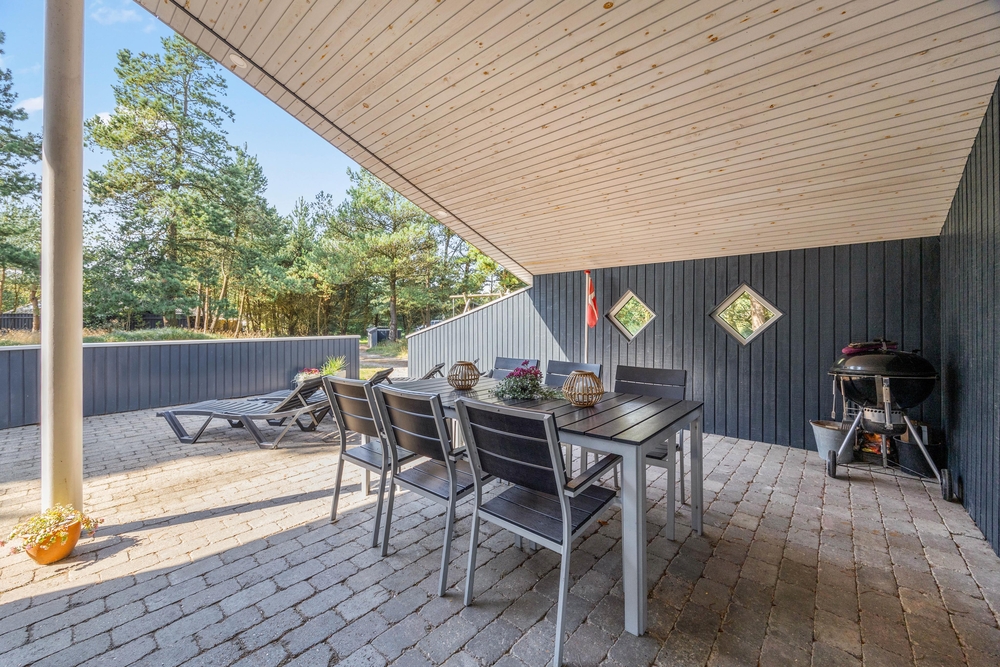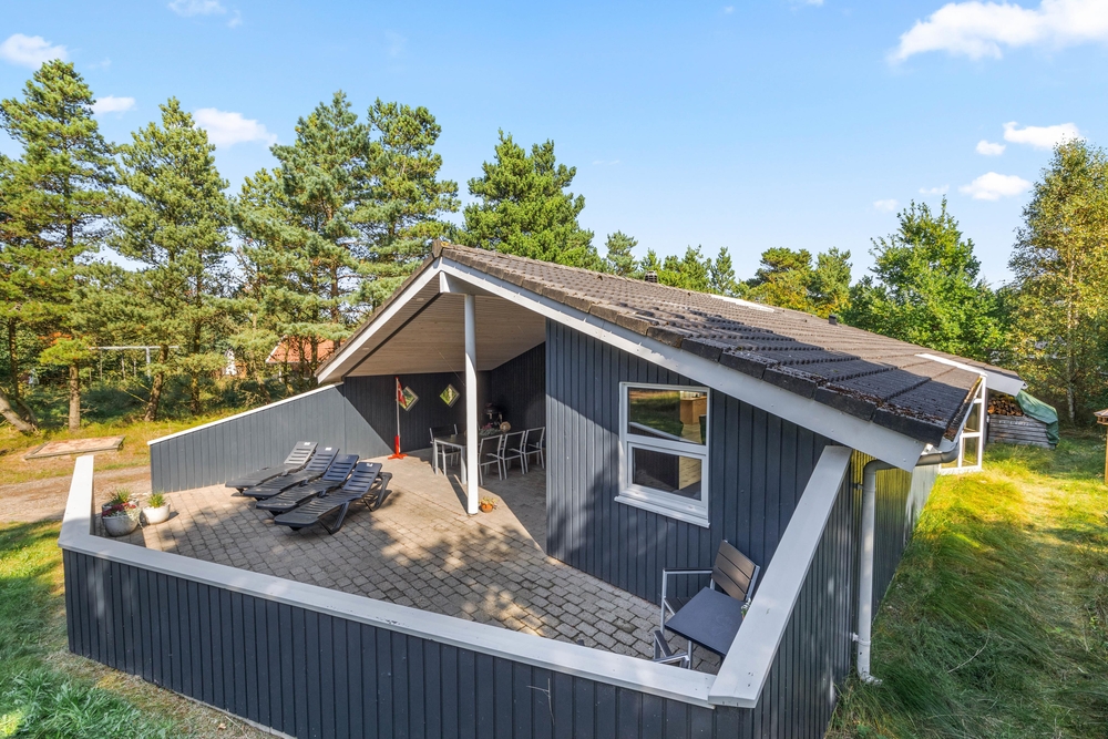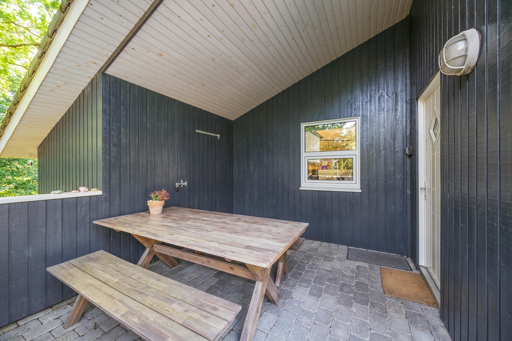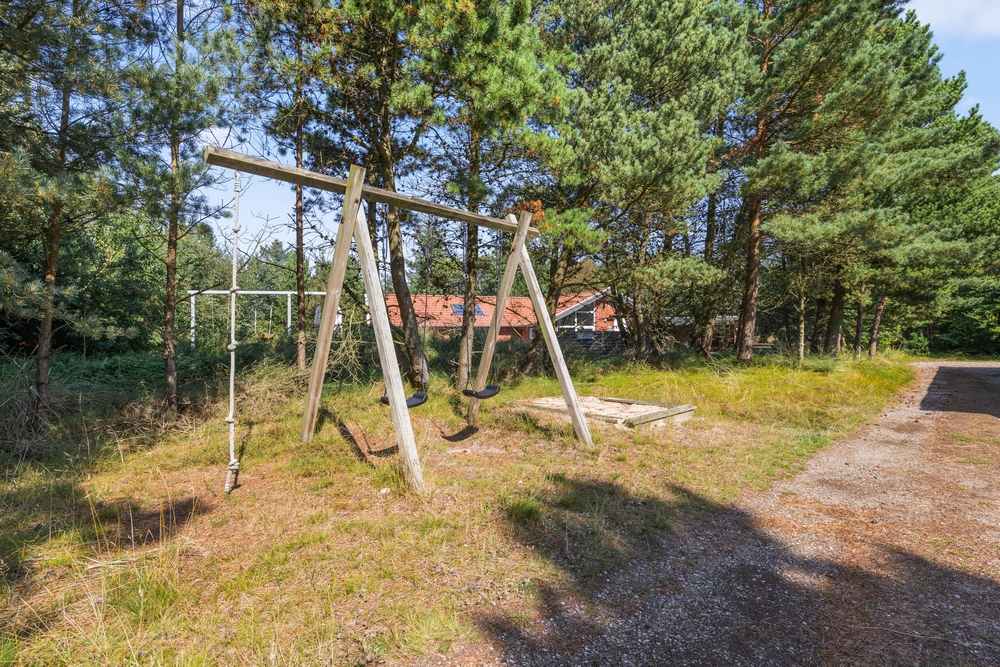 Das Ferienhaus ist von Natur umgeben. Die alten Kiefer sorgen für Ruhe und ein ungestörtes Zusammensein. Die Terrasse, die direkt vom Wohnzimmer begehbar ist, hat sowohl einen offenen als auch einen überdachten Bereich, sodass ihr immer ein gemütliches Plätzchen zum Entspannen findet. Lehnt euch in den bequemen Gartenmöbeln zurück und lasst die Kinder im Sandkasten spielen oder sich auf der Schaukel austoben. Die großzügige Gartenfläche lädt geradezu dazu ein, mal wieder gemeinsam Fußball zu spielen. Hier können sich Jung und Alt austoben.
