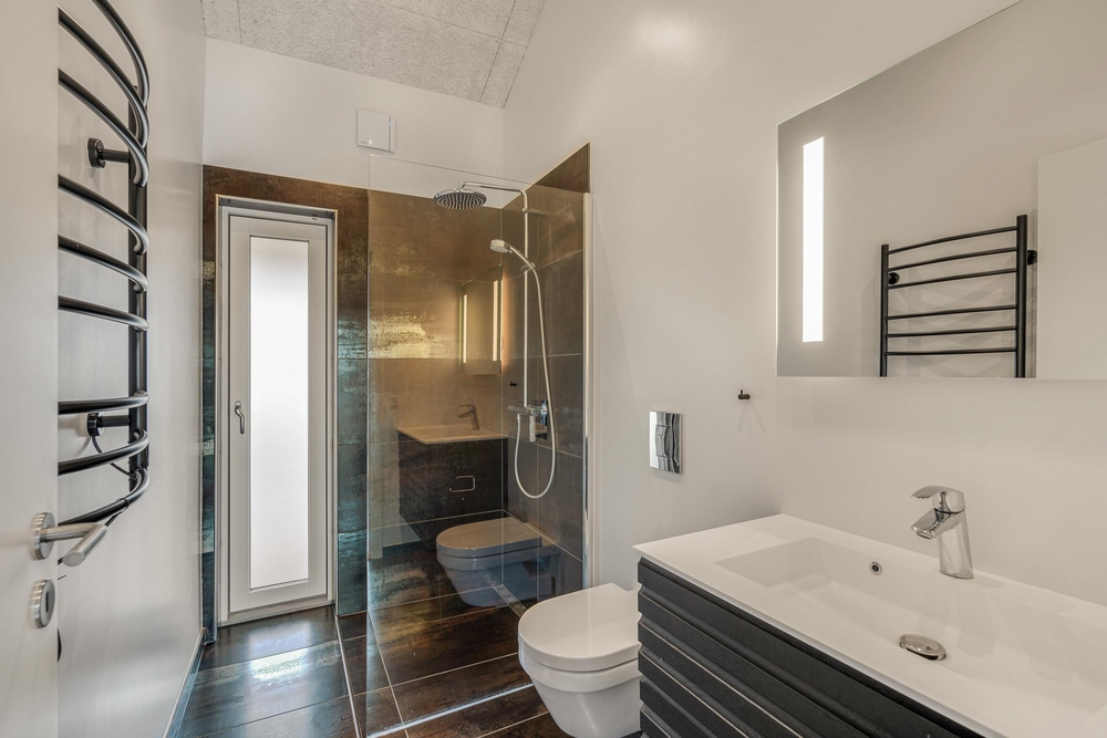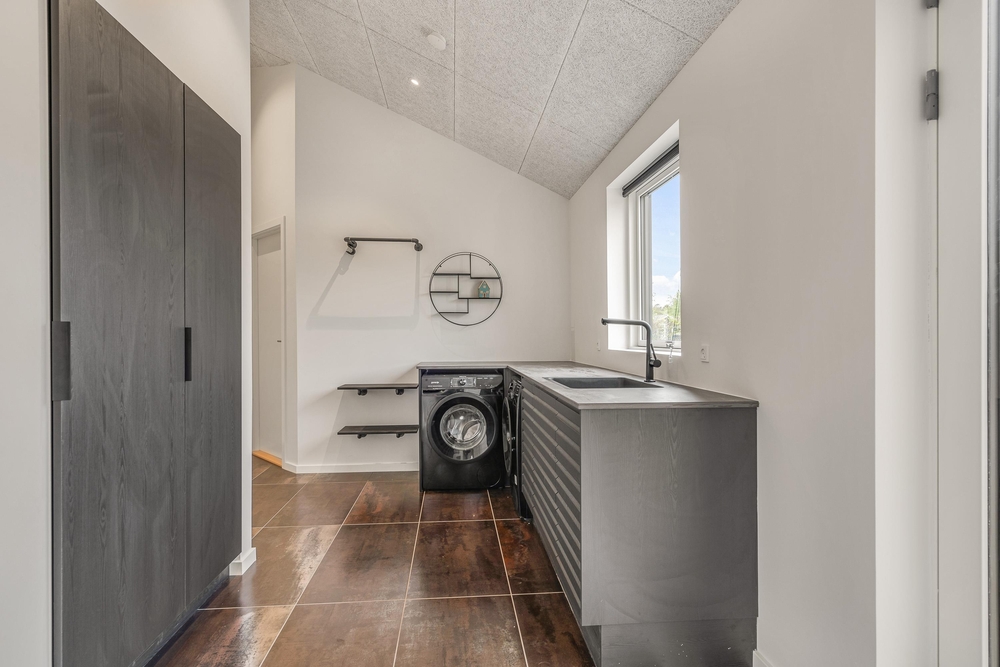 Auch auf der rein praktischen Seite überzeugt dieses Ferienhaus. Neben Spül- und Waschmaschine, Trockner und Mikrowelle, dänischem und deutschem Fernsehen gibt es auch eine Fußbodenheizung im Wohnbereich und zusätzlich eine energiesparende Wärmepumpe.