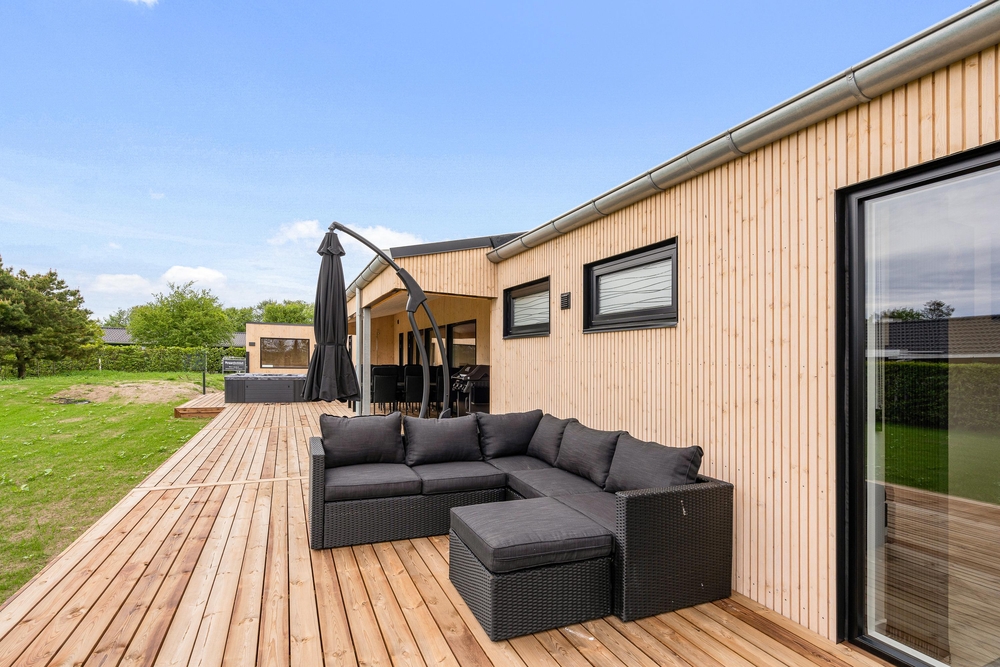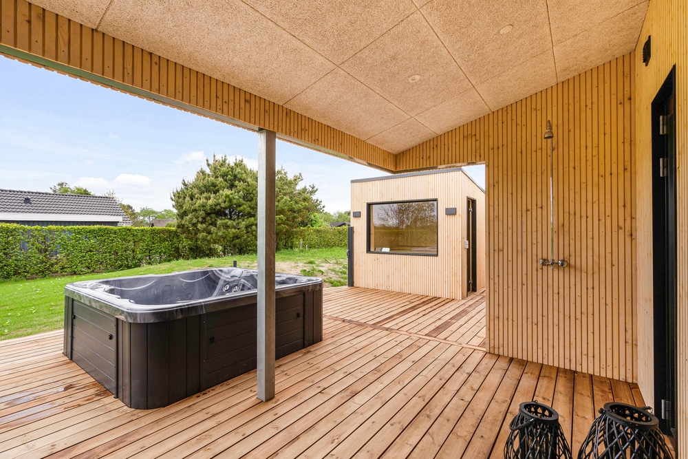Das Ferienhaus am Grønnevej 17 liegt auf einem 1.500 qm großen Grundstück mit einem traumhaften Außenbereich voller Highlights für eure Ferien. Entspannung pur erwartet euch hier in einem Wellnessbereich mit Außenwhirlpool, Außensauna und Außendusche. Bitte bemerken, dass die Außendusche nur ab 1. April bis zum 31. Oktober benutzbar ist.