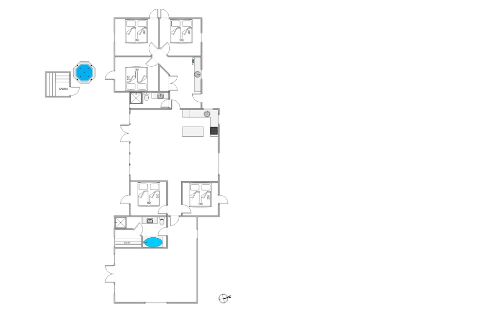 Das Ferienhaus am Grønnevej 17 bietet auf 182 qm viel Platz für 10 Feriengäste. Es verfügt über 5 Schlafzimmer, wobei 3 der Schlafzimmer mit einem Doppelbett und die restlichen 2 mit Einzelbetten ausgestattet sind. Darüber hinaus gibt es 2 Bäder, beide mit Fußbodenheizung.