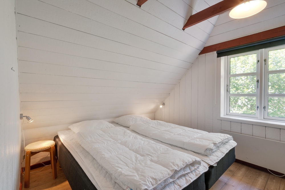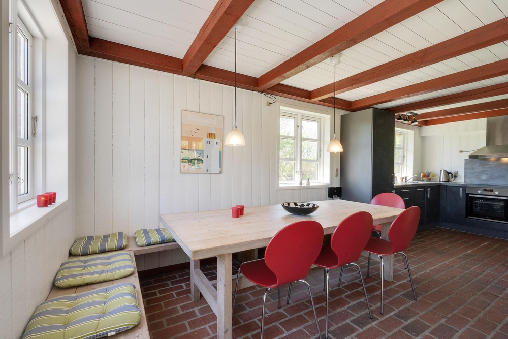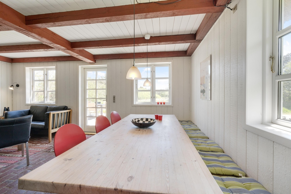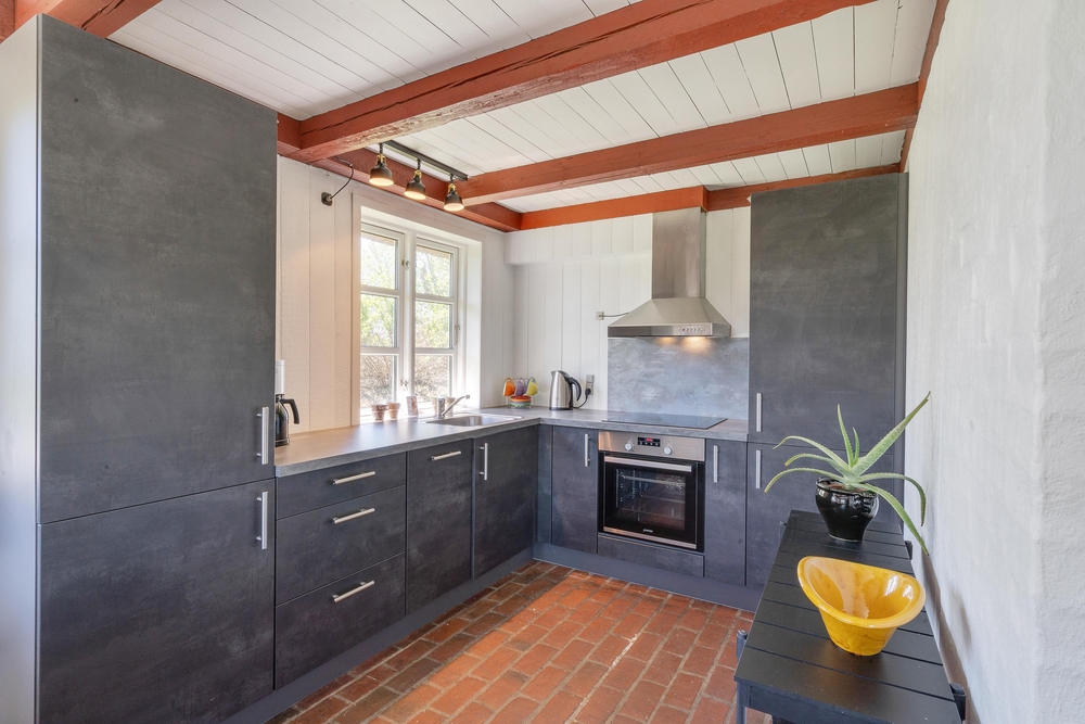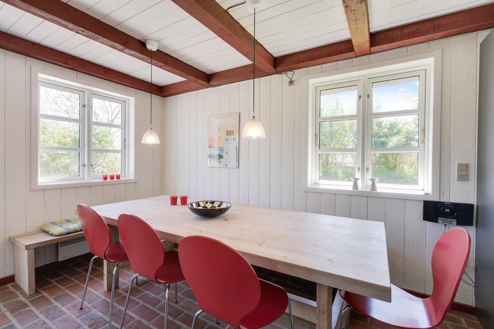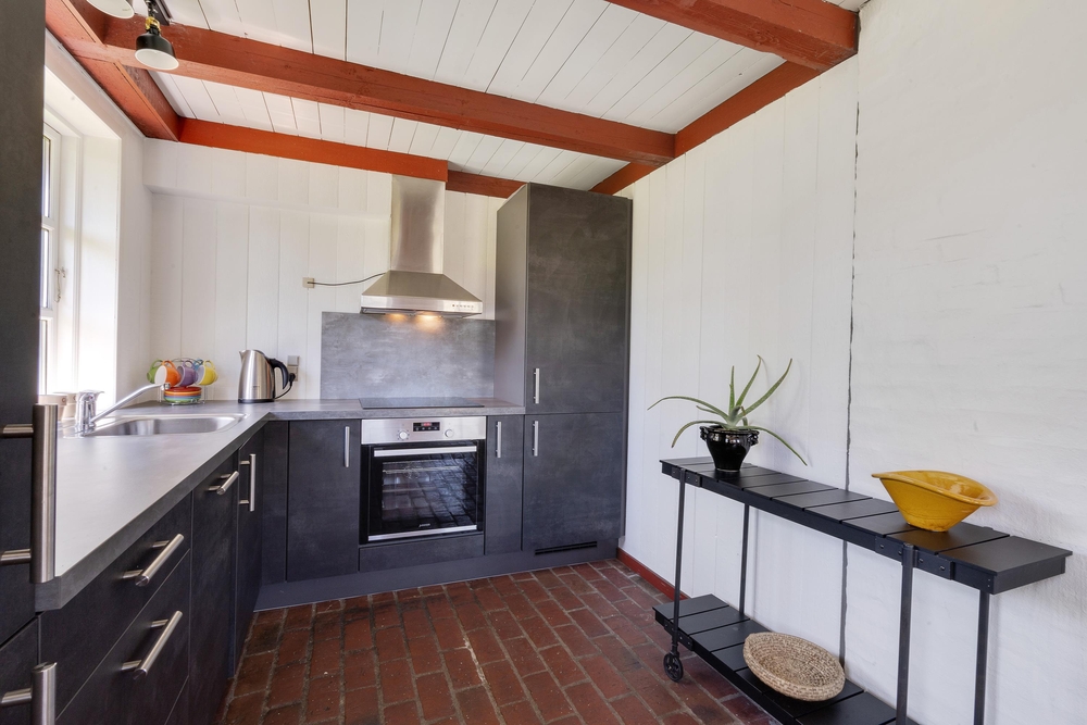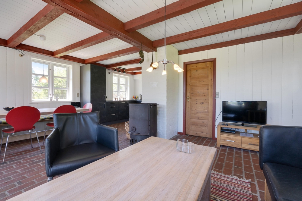 In diesen rustikal gestalteten Räumen mit Deckenbalken am Grønnevej 3, werdet ihr euch sofort wohlfühlen. Die Kombination von traditioneller Bauweise und moderner Einrichtung ist hier gut gelungen. Der besondere Charme dieses Hauses beinhaltet allerdings auch einen Treppenaufgang an dem man den Kopf einziehen muss und eine verhältnismäßig kleine Dusche. Ein Kaminofen sorgt dafür schnell für Gemütlichkeit in diesem soliden Ferienhaus.