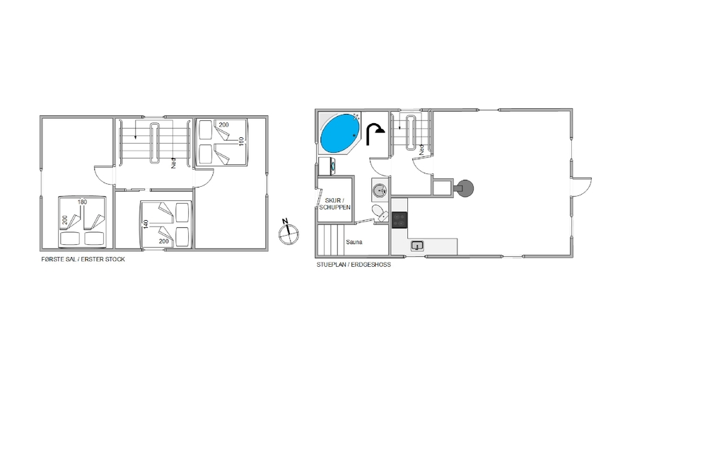 Das Ferienhaus ist über 2 Etagen eingerichtet, wobei euch im 1. Stock 2 Schlafzimmer mit bequemen Doppelbetten erwarten. Hier könnt ihr euch zurückziehen und eine gute nachts Ruhe genießen, bevor der nächste Urlaubstag neue lustige Aktivitäten bietet. Bitte beachten, dass die Treppe kein Geländer hat, steil ist und eine begrenzte Stehhöhe hat und daher für Kinder und Menschen mit Gehbehinderung nicht geeignet ist.